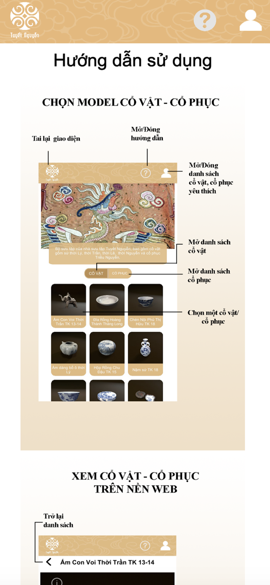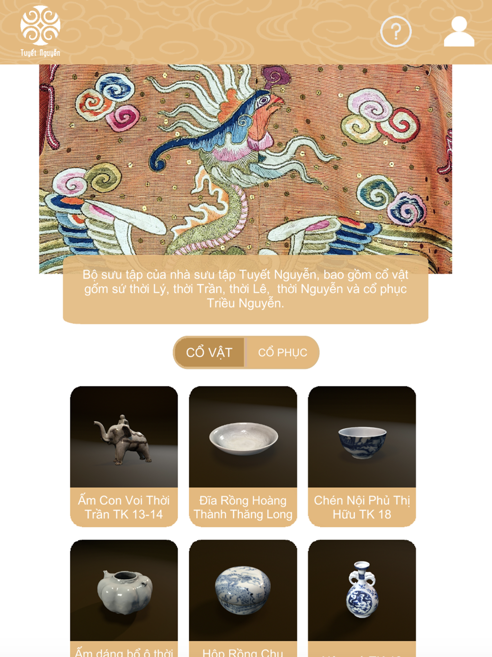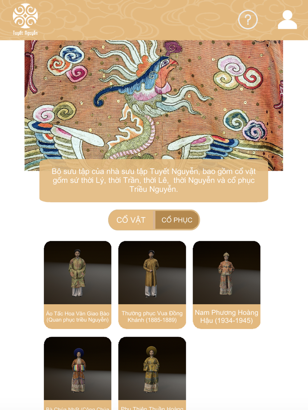 Tuyết Nguyễn là ứng dụng được phát triển bởi đội ngũ 3DART, với công nghệ thực tế tăng cường được sử dụng để giúp người dùng quan sát mô hình số hoá 3D các cổ vật, cổ phục ngay trong không gian thật, góp phần đem lại những trải nghiệm chân thực nhất, đồng thời lưu trữ những giá trị văn hoá, tâm linh của dân tộc đến mãi về sau.