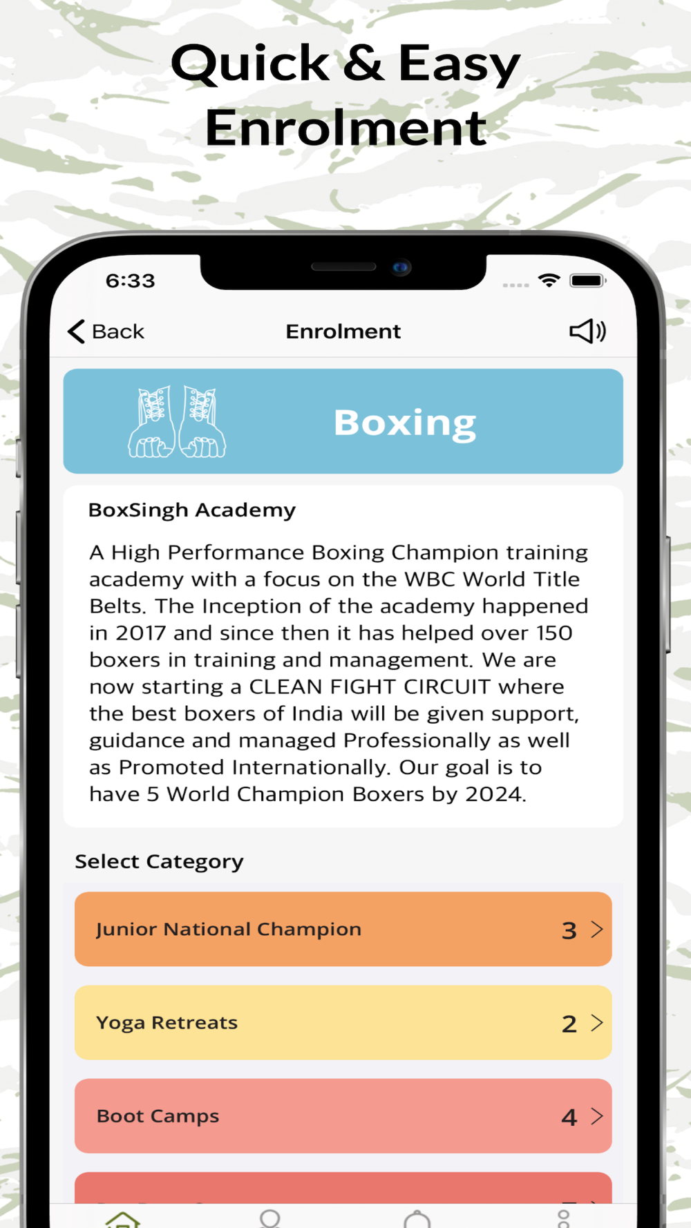 An automated system where one who downloads the apps will get info on all our camps, trainers, coaches, specialists and programs with a focus on being the best in the world.