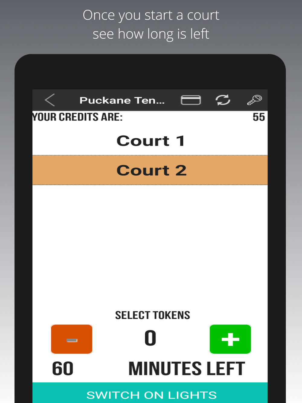 The official Puckane Tennis Club app allows our members to control the lights on the courts. Removing the requirement to carry physical tokens or cash when coming into the club for a game.