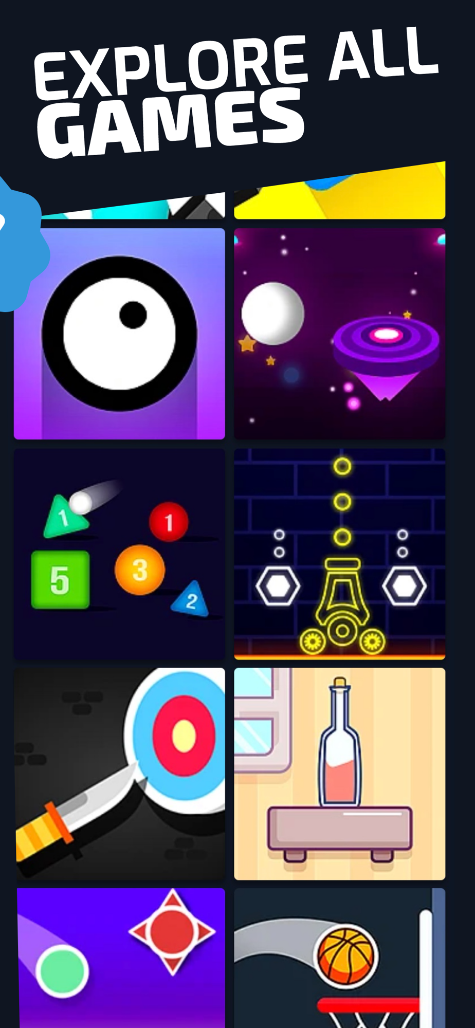 Choose your favorite one from a variety of hyper casual games and get the TOP position in the leaderboard among friends, colleagues, in your country or even the whole world!