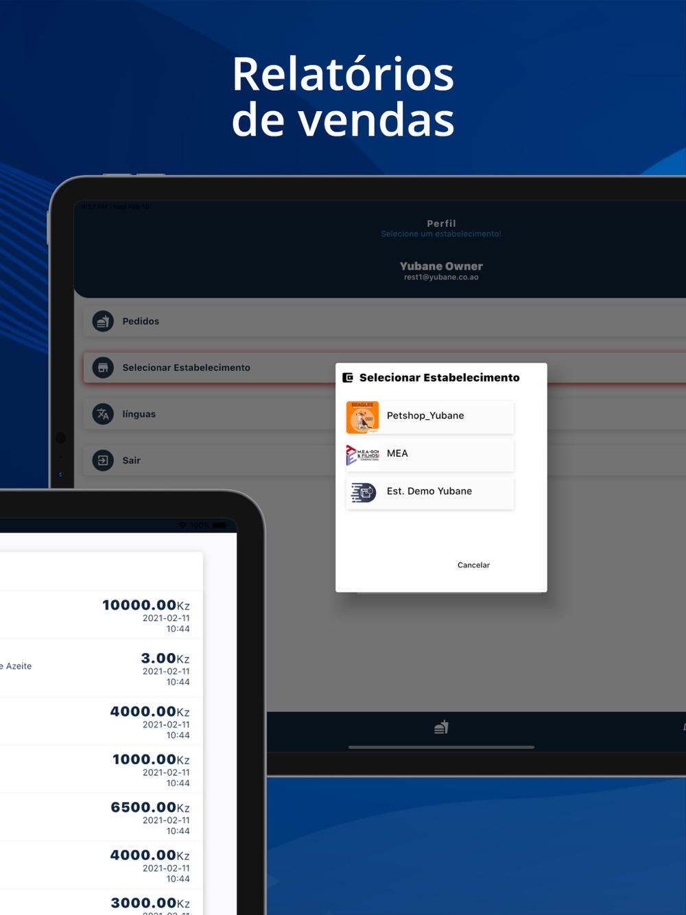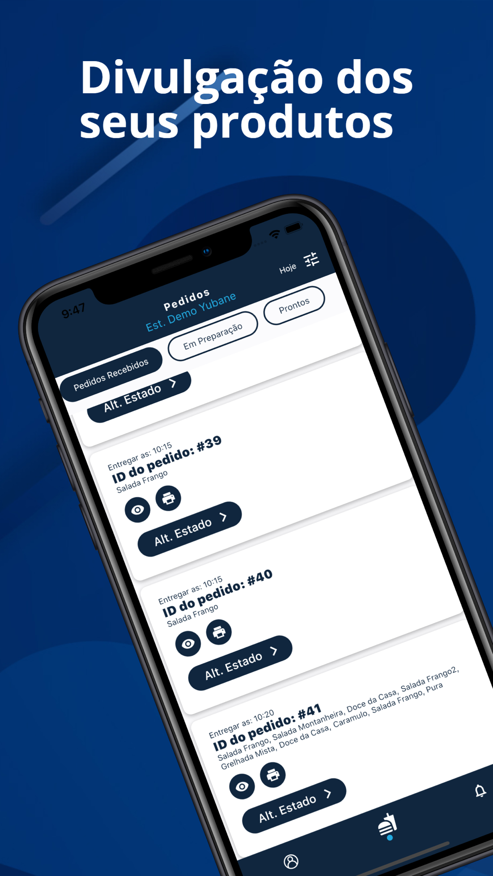 Gestão de pedidos, produtos e horários do seu estabelecimento.