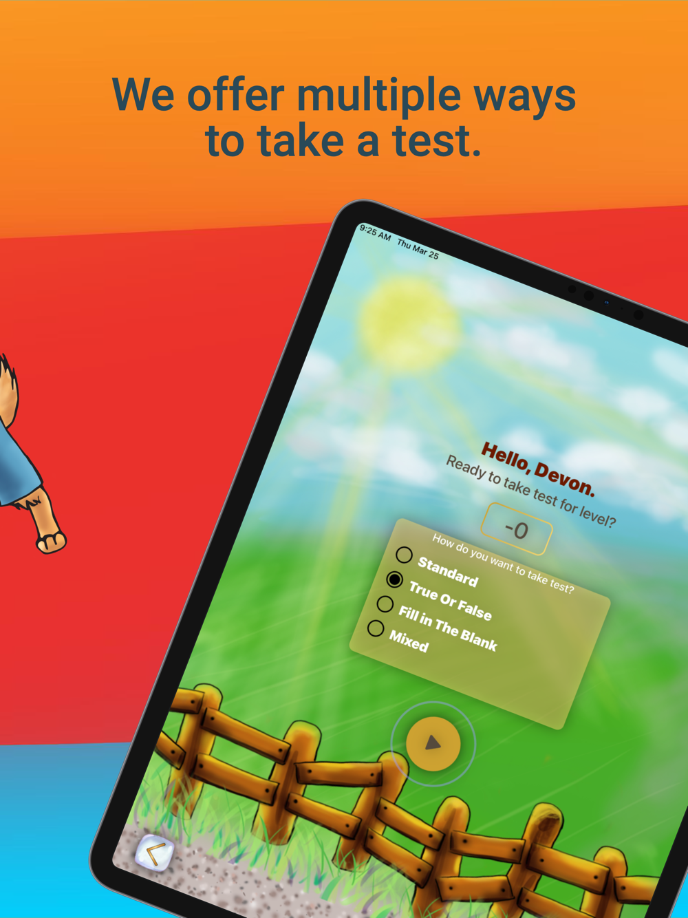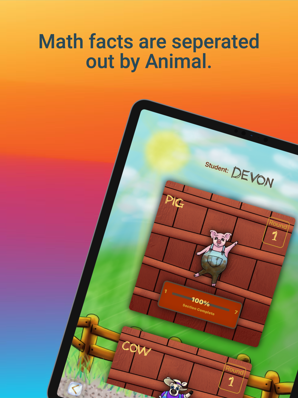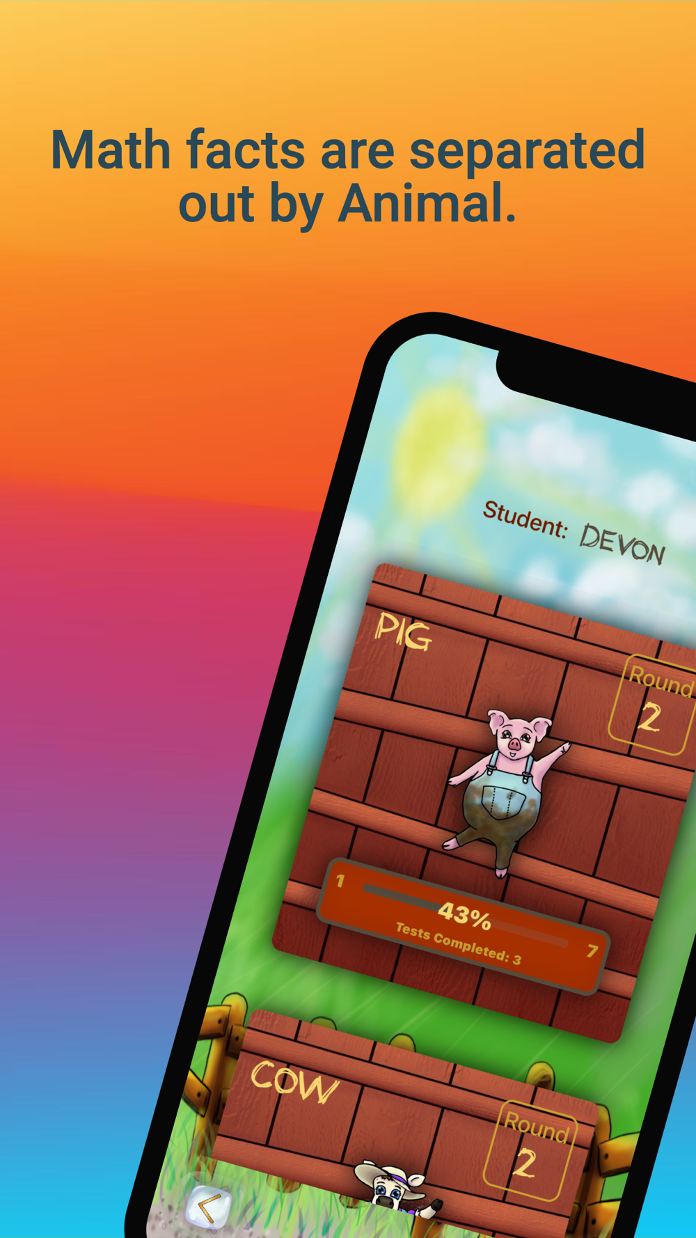 This app will start you off with addition, then subtraction, then multiplication and finally division. This way you take a stepped approach into learning your basic math facts through repetition by completing multiple rounds.