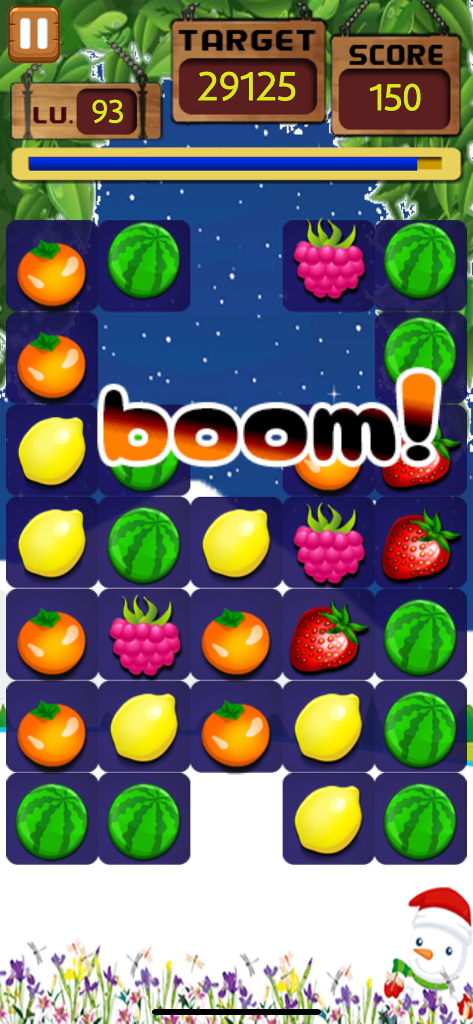 Fruit Boom Link puzzle need connect 3 or more same fruits to score points.