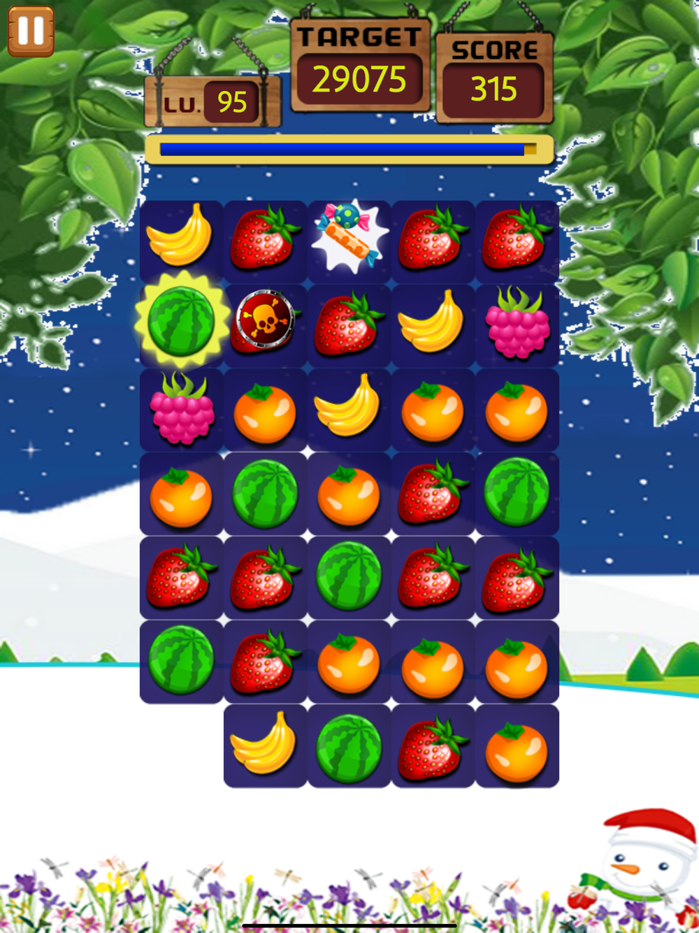 Fruits types in game: Strawberry, Banana, Pomegranate, Pear, Dragon Fruit, Grape, Apple, Pie, Saga, Ice, Snow.