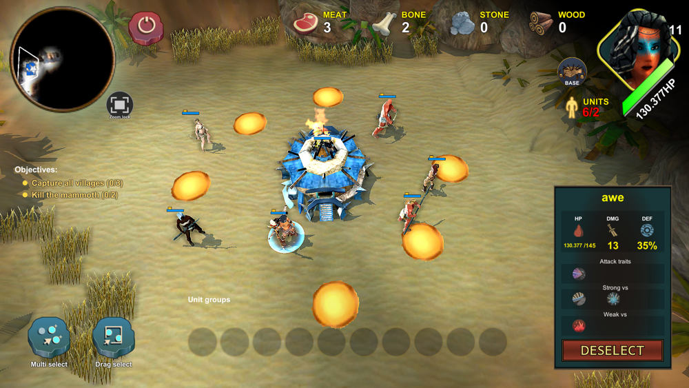 The game also provides full control over camera rotation, zoom and pan and includes multiple unit selection using both tap or drag gestures. Use the group selection feature to create groups of warrior units, ensuring you deliver your best strategy at all times.