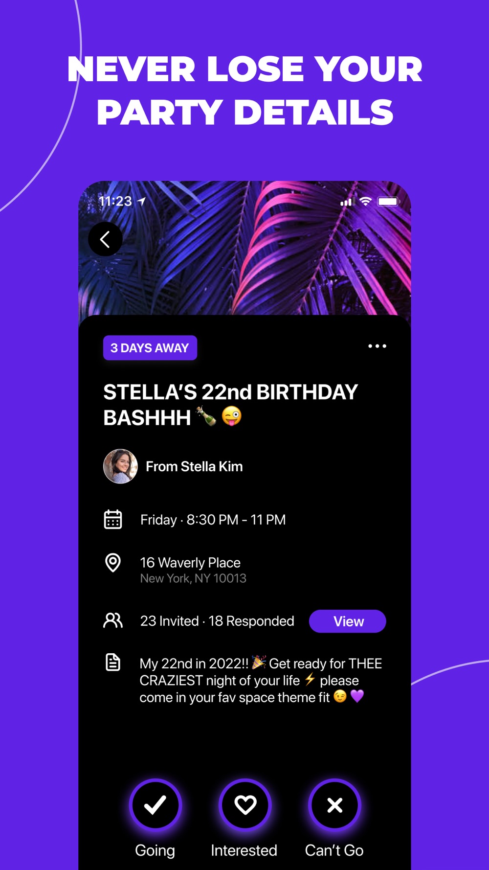 Stop having friends bombard you with annoying questions when throwing your event and make it easy with Beacon! Our features make planning any party a seamless experience: