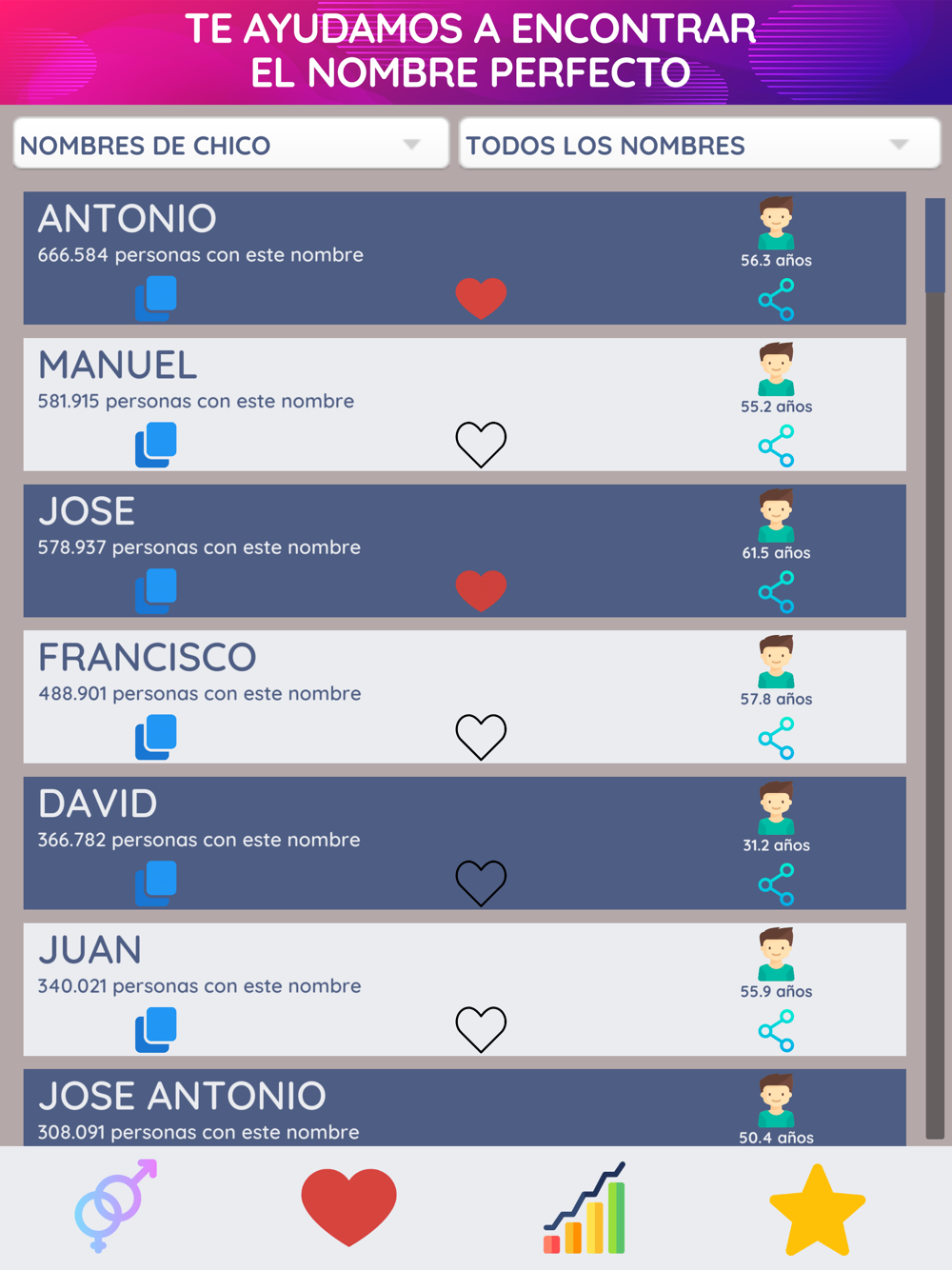 Tanto si estás pensando un nombre para tu bebé como si sientes curiosidad por saber cuánta gente hay en España con un nombre en concreto (entre muchas otras cosas más) está es la app que debes descargar.