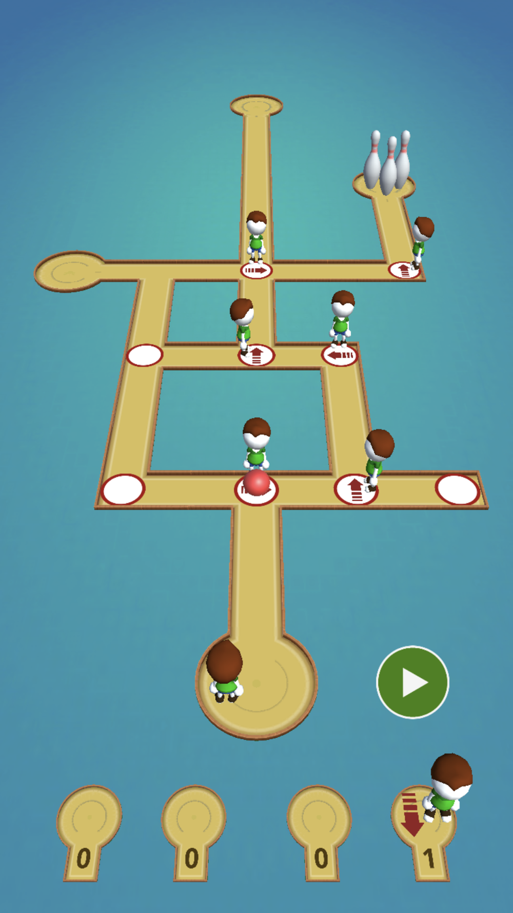 "Bowling Boys" is a game where there are boys who can throw the ball either left or right or up or down. There are different paths from the ball to the bowling kegels, there are special places on the roads, and the player must put the boys correctly so that they throw the ball and the ball reaches the bowling kegels.