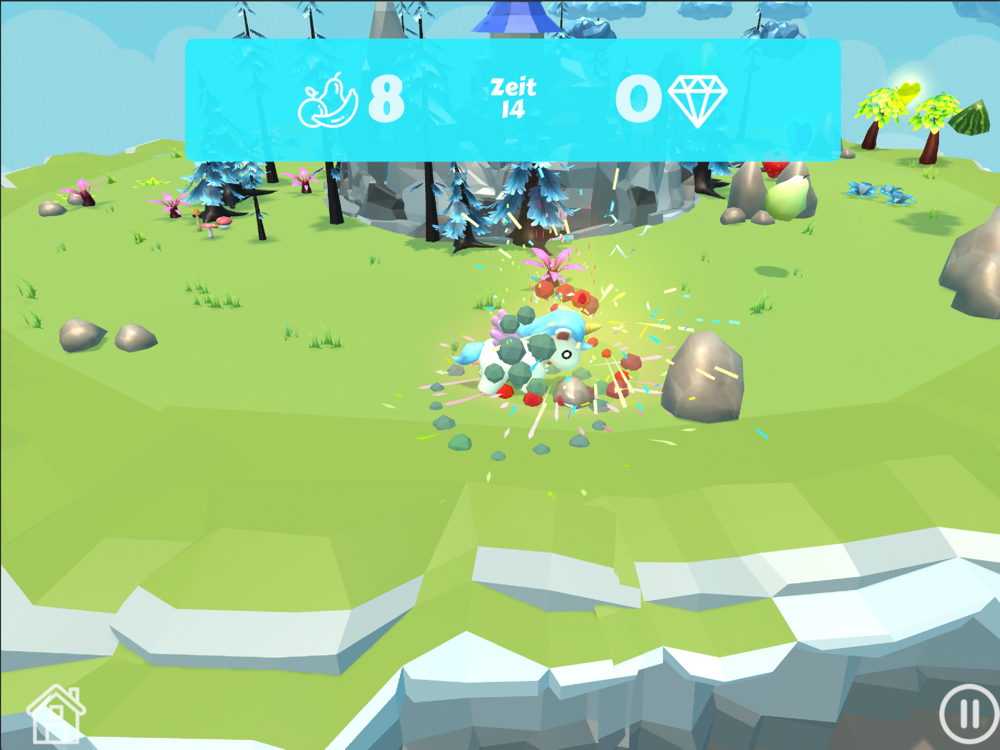 With your magic unicorn you can conjure away obstacles - but that's exhausting and that's why you always have to eat enough fruit.