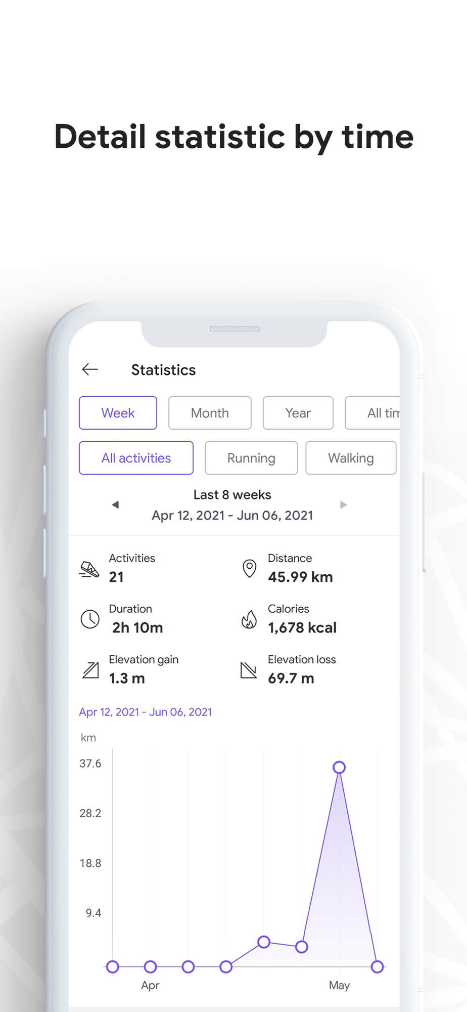 + Set distance goals: the smallest distance goal starting from 0.5km and can gradually increase