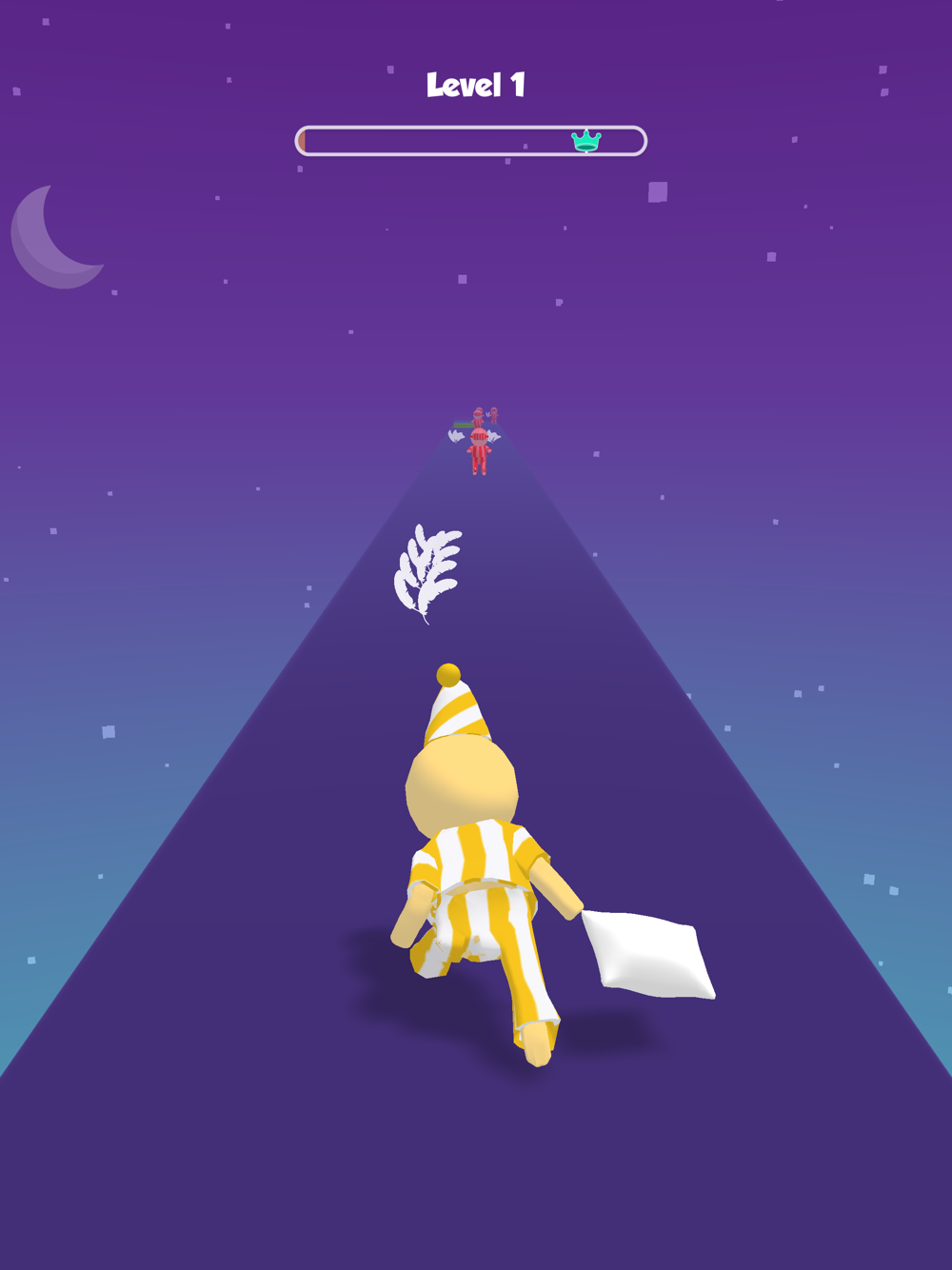 Collect feathers to make pillow bigger, use it to beat enemies and run in dream world.
