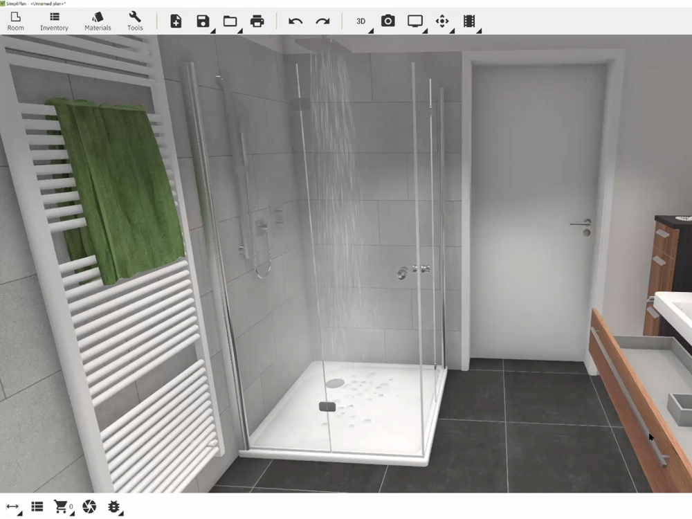- Drag and drop planning. Add furniture and tiles to the bathroom by simply dragging them into place. Accurate adjustments can be easily made using dimensions on the product panel.