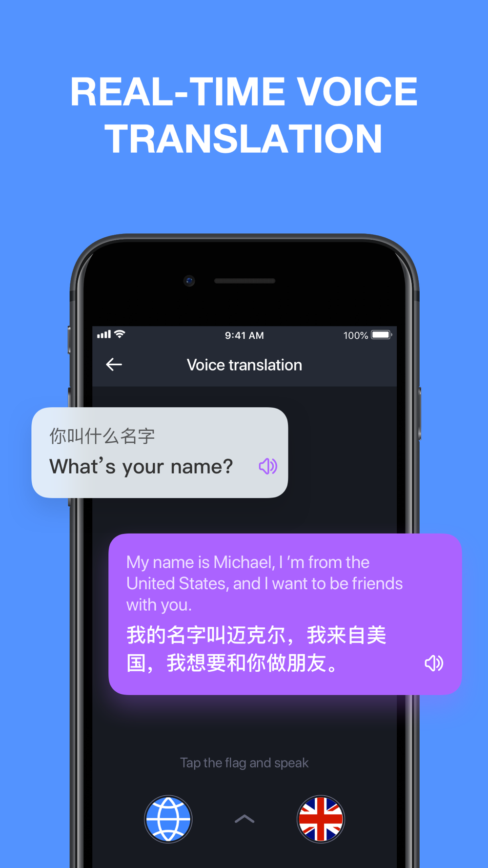Speak to translate. Dictate what you want to translate and let the app read out the translation, or read it on your screen.