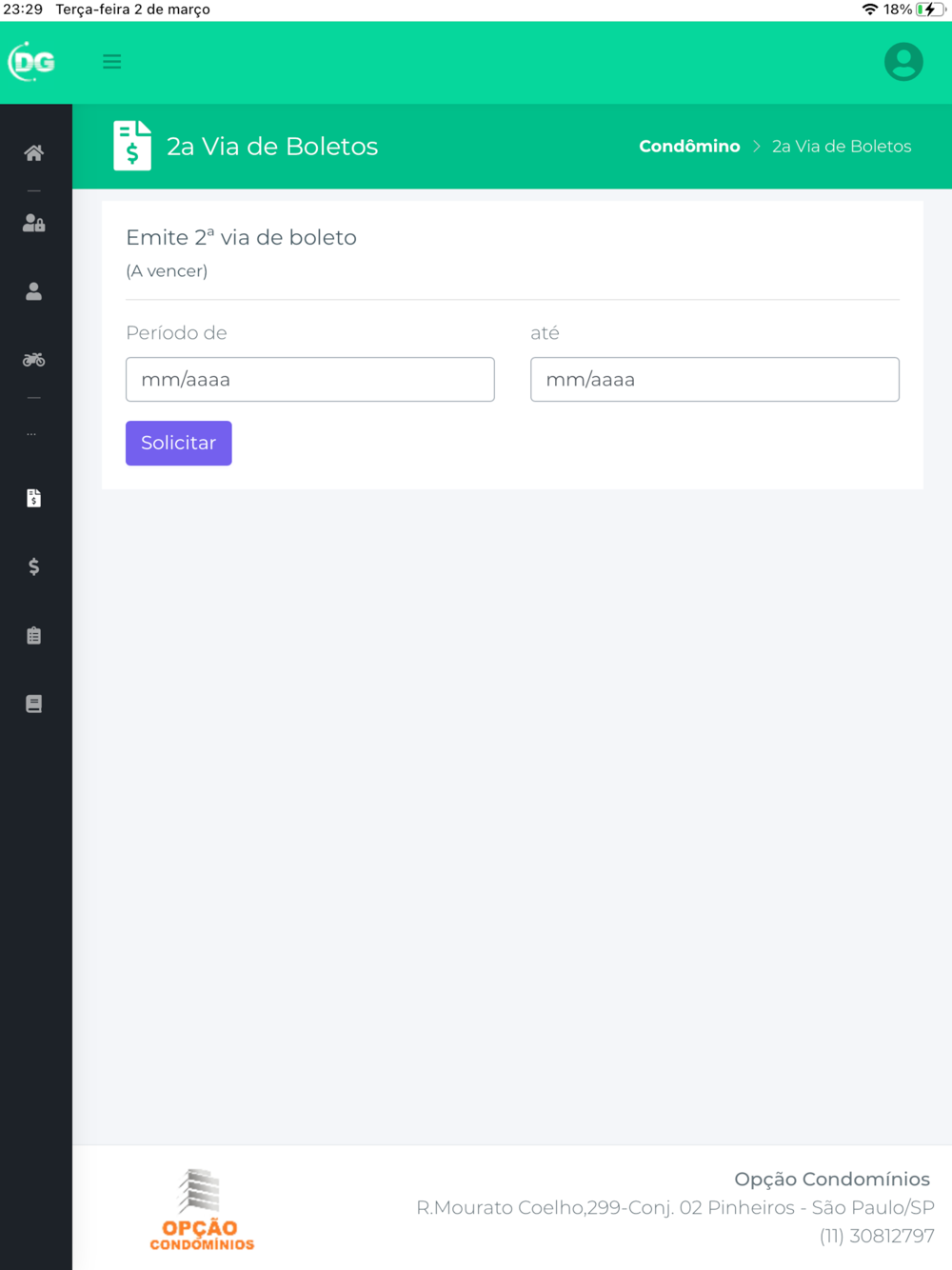 Com o D&G Conecta, você tem a última informação disponível para você e seu condomínio, estando conectado diretamente com a administradora, tenha à ponta dos dedos diversas opções como geração de segundas vias de boletos, resumos sobre a saúde financeira do seu condomínio e até mesmo reservas de ambientes.