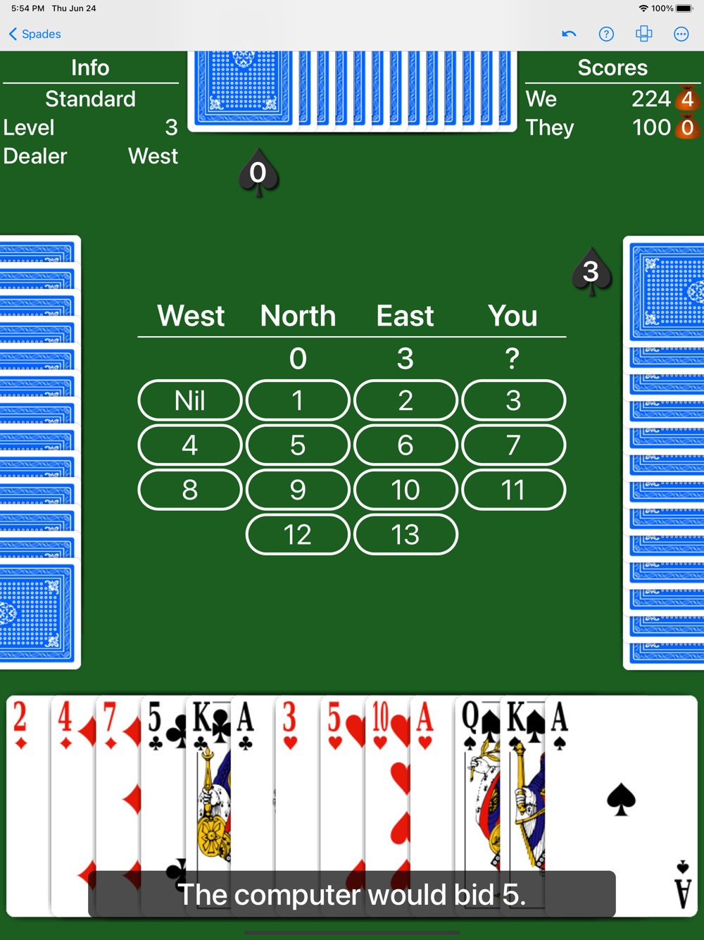 • Spades can be lead anytime. Choose whether or not spades must be broken before being lead.
