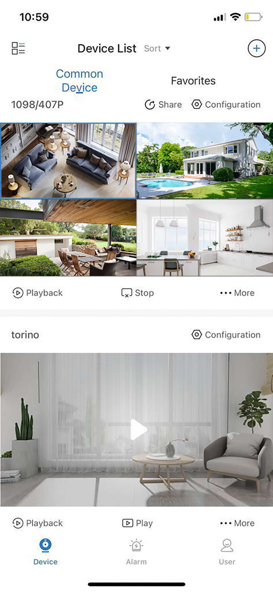 It’s possible to manage live and playback connection (also with audio if available) during alarm activity or by user demand.