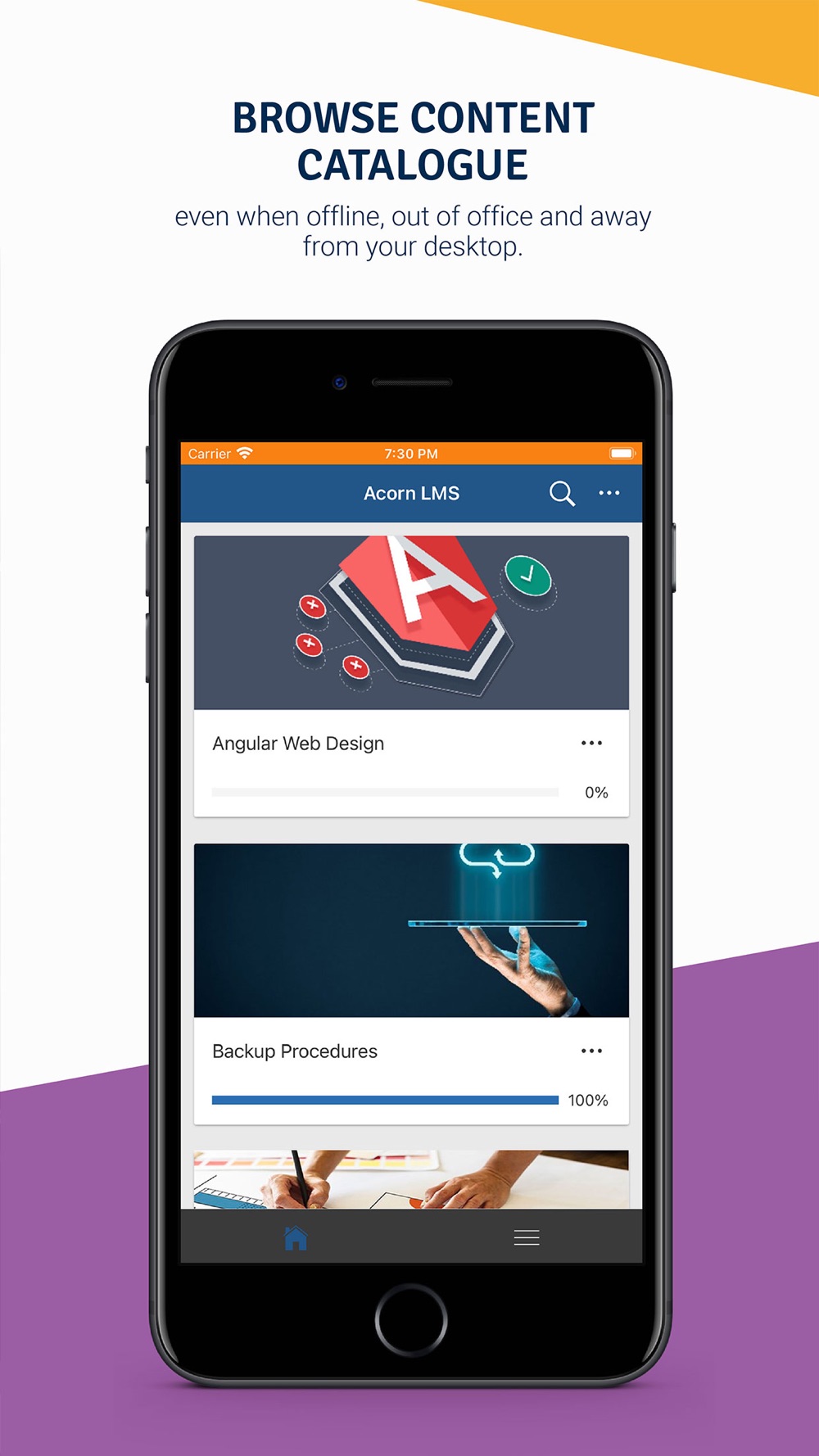 The Acorn LMS app helps you access courses anytime, anywhere and on any device. Browse your content catalogue even when offline, out of office and away from your desktop. Just log in like you do on the Acorn site and return to training where you left off.
