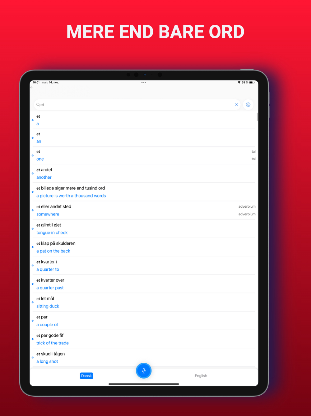 Ordbøgerne er gratis for alle og bliver finansieret gennem reklamer i appen.