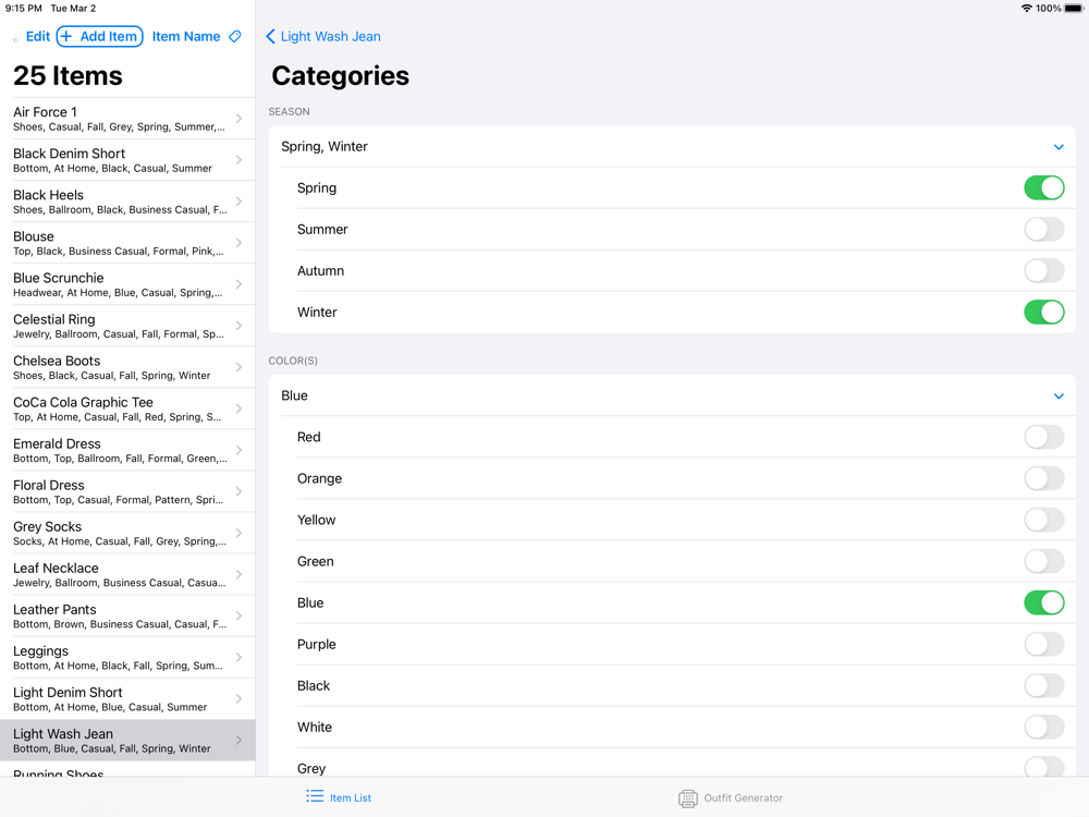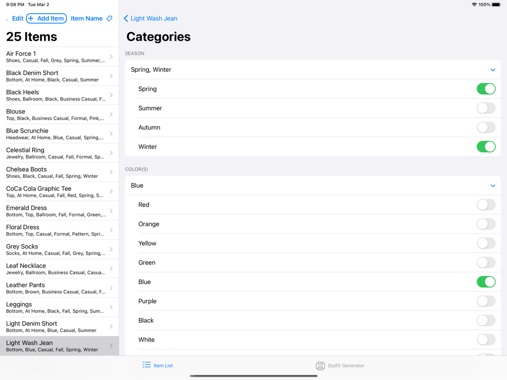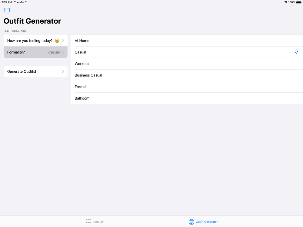 QuickCloset is the answer to all your closet organization needs. Simply download the app and add your clothing to the virtual closet, assigning tags to each item like Summer, Casual, and Yellow. Then, move to the Outfit Generator tab where you will fill out the questionnaire and then see QuickCloset do what it does best: generating outfits! Scrolling horizontally, you will be able to view as many unique outfits as there are different appropriate tops. Screenshot to save an outfit combination or have fun seeing all the amazing ways to wear your favorite clothing.