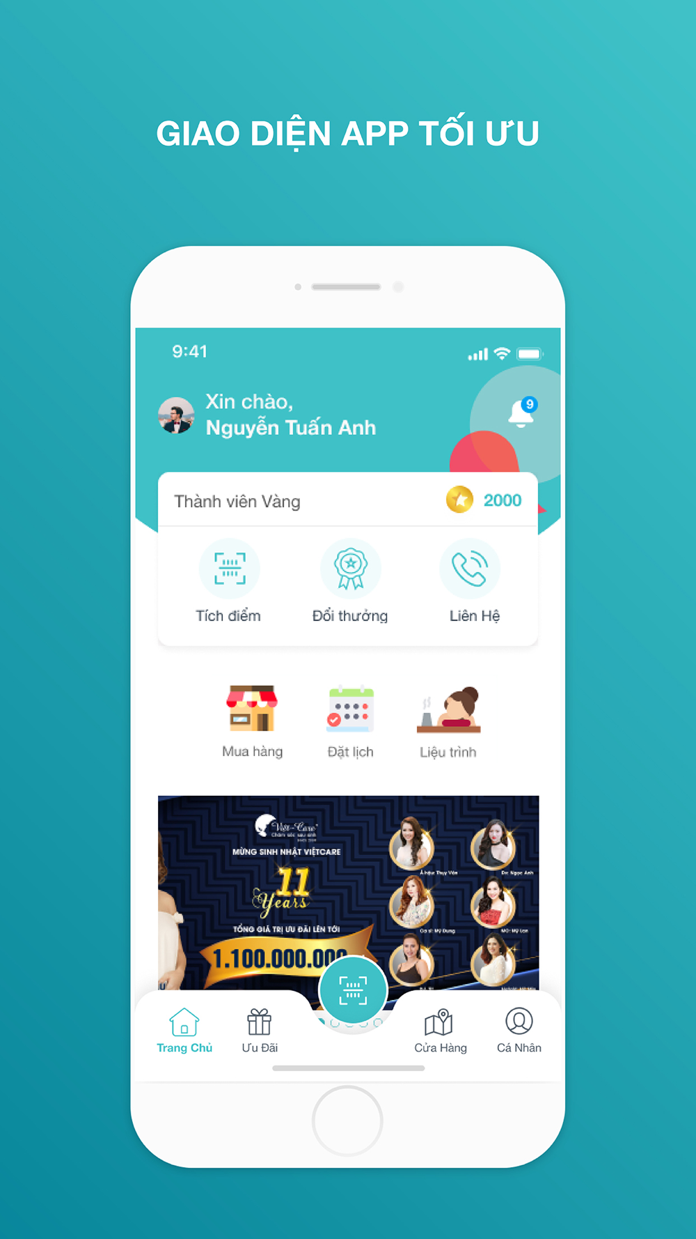 Việt-Care App là ứng dụng chăm sóc khách hàng, mua sắm, tích điểm, theo dõi liệu trình và phản hồi đánh giá chính thức