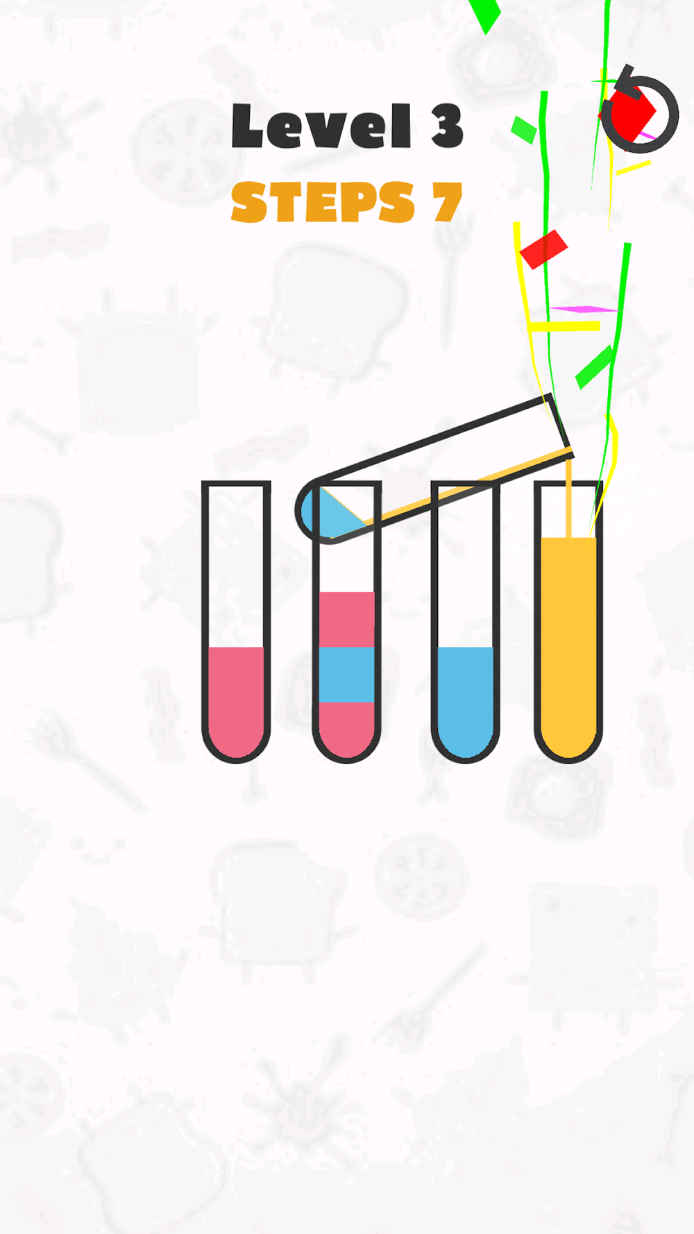 Try to sort the juice in the glass until all the colors are in the same glass.