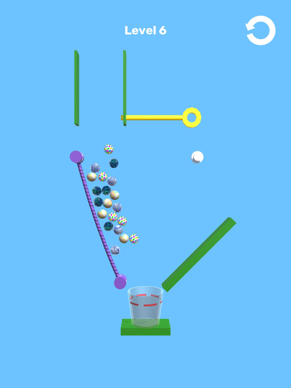 Once you have a way to move the rope and put the marbles in the cup, swipe to cut the rope connected to the marbles and the marbles will fall and start rolling.