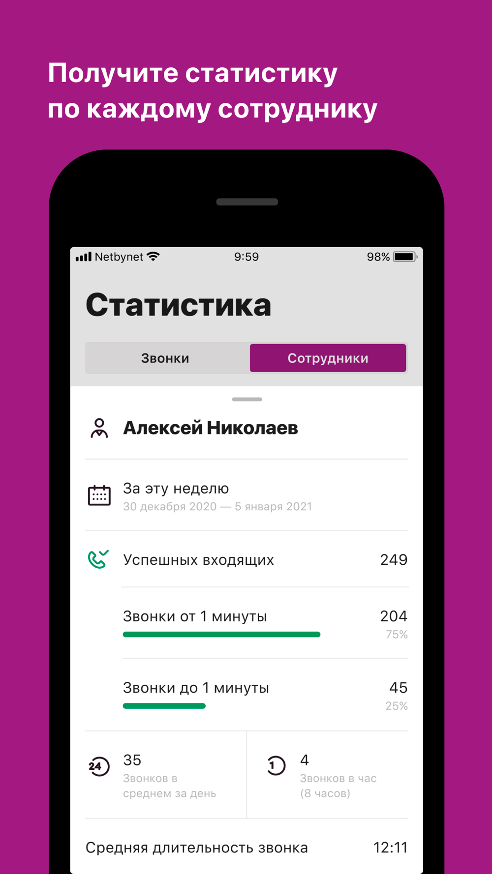 - анализировать показатели статистики и динамику по звонкам за выбранный период;