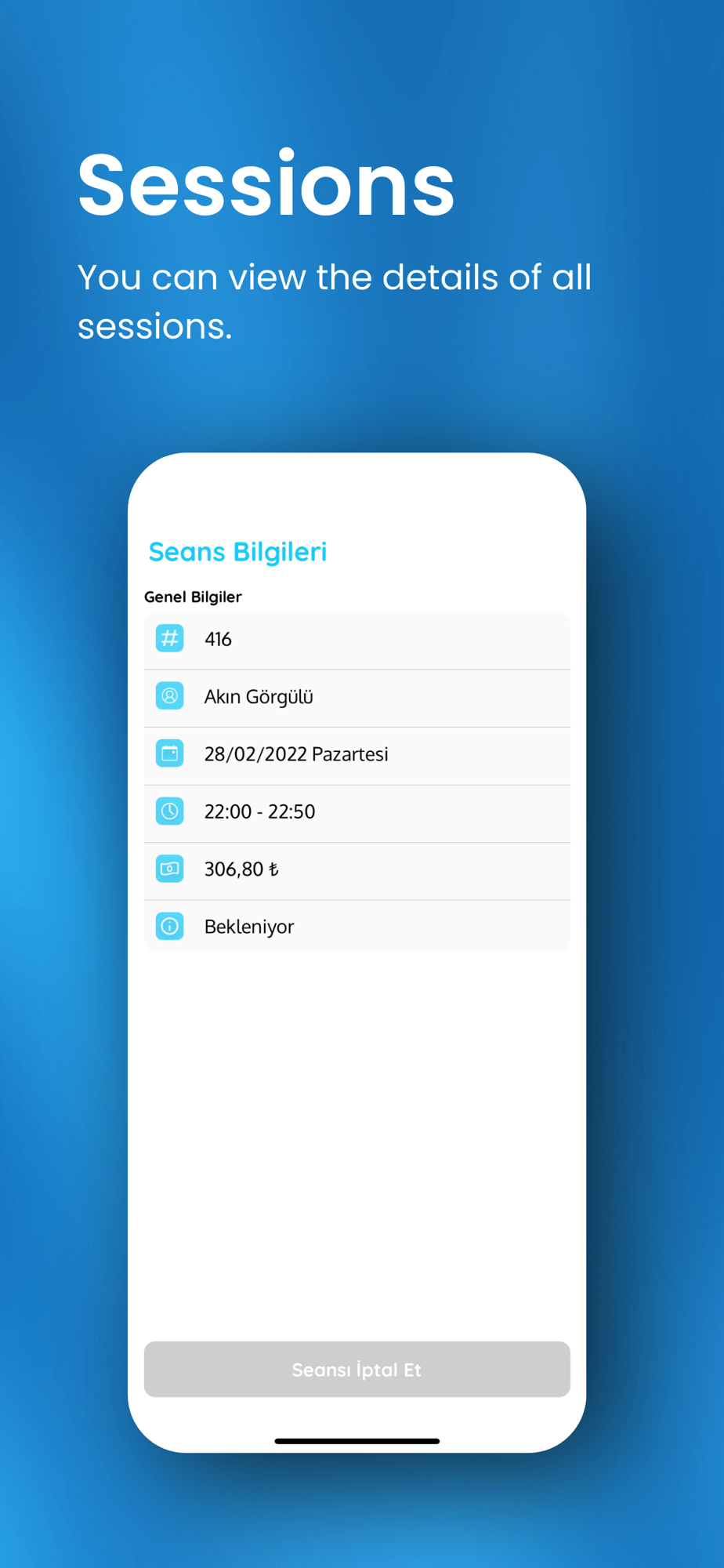 Easily keep track of your appointments with your digital calendar and receive periodic reminders. Keep track of your future and past sessions.