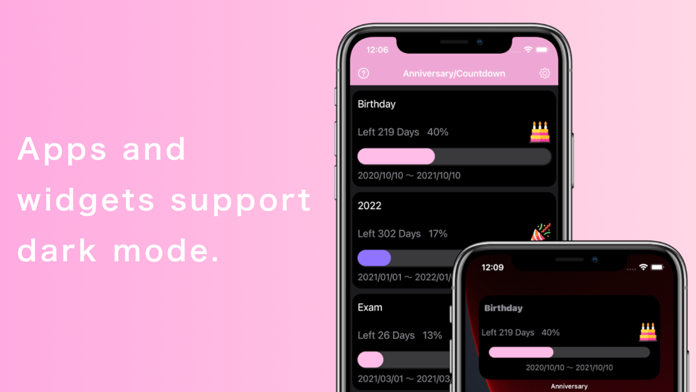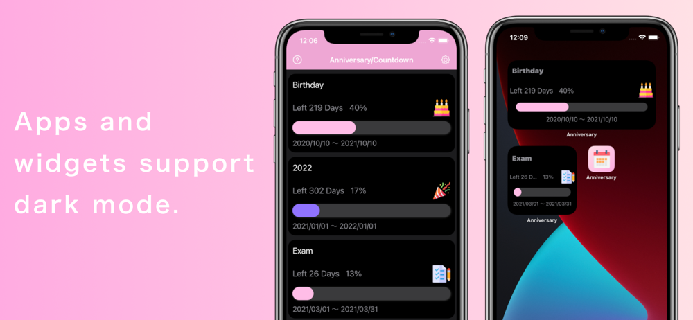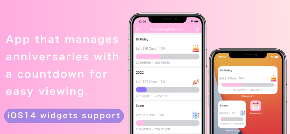 iOS14のウィジェットに特化した記念日カウントダウンアプリです。