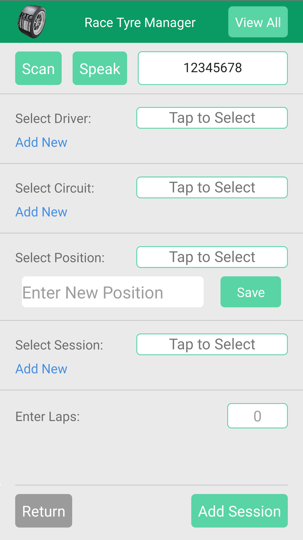Add your tyres by scanning the barcode with the app's in built barcode scanner, reading the tyre number using the speech recognition option or simply typing the number directly into the text area.