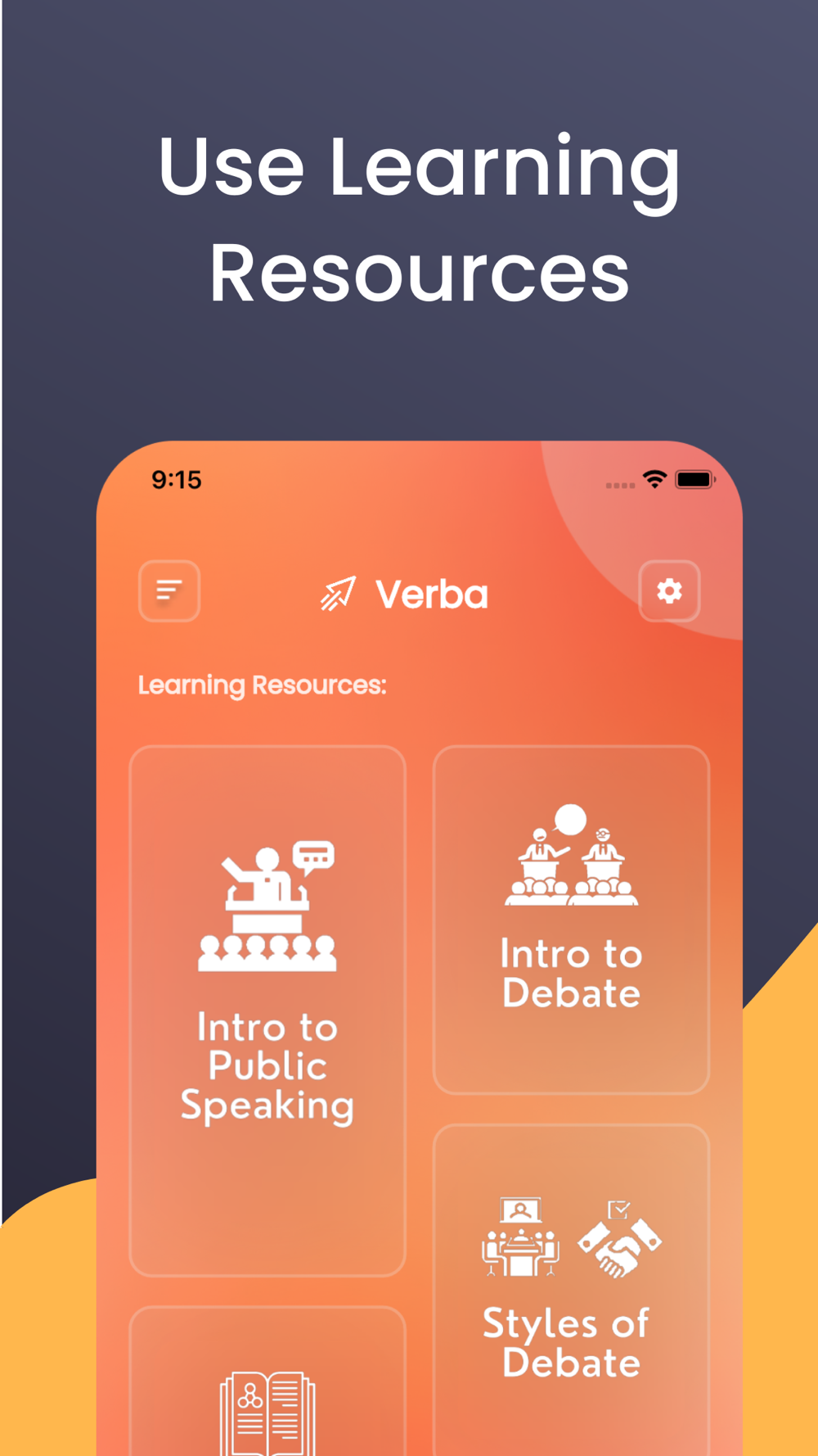 In addition to our public speaking-oriented features, at Verba, we take a unique approach and help you learn different styles of speaking for different purposes. Persuasive speaking is important for job interviews and situations in which you need to sell yourself, an idea, a product, or anything else of the sort. Through an immersive debate curriculum, daily news to help you if you participate in competitive debate, and refutation drills, we have the infrastructure to support you if you want to explore the debate route!