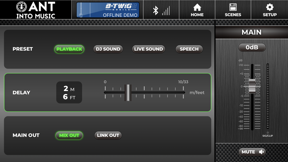 The ANT Remote app and on-board B-TWIG 8 Mobile LCD display are linked to each other so that any change on the app will be mirrored in real time on the physical LCD and vice-versa.
