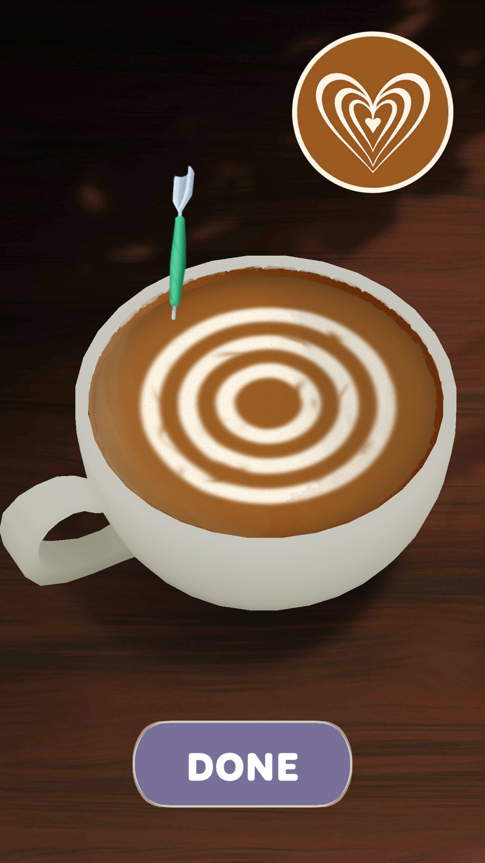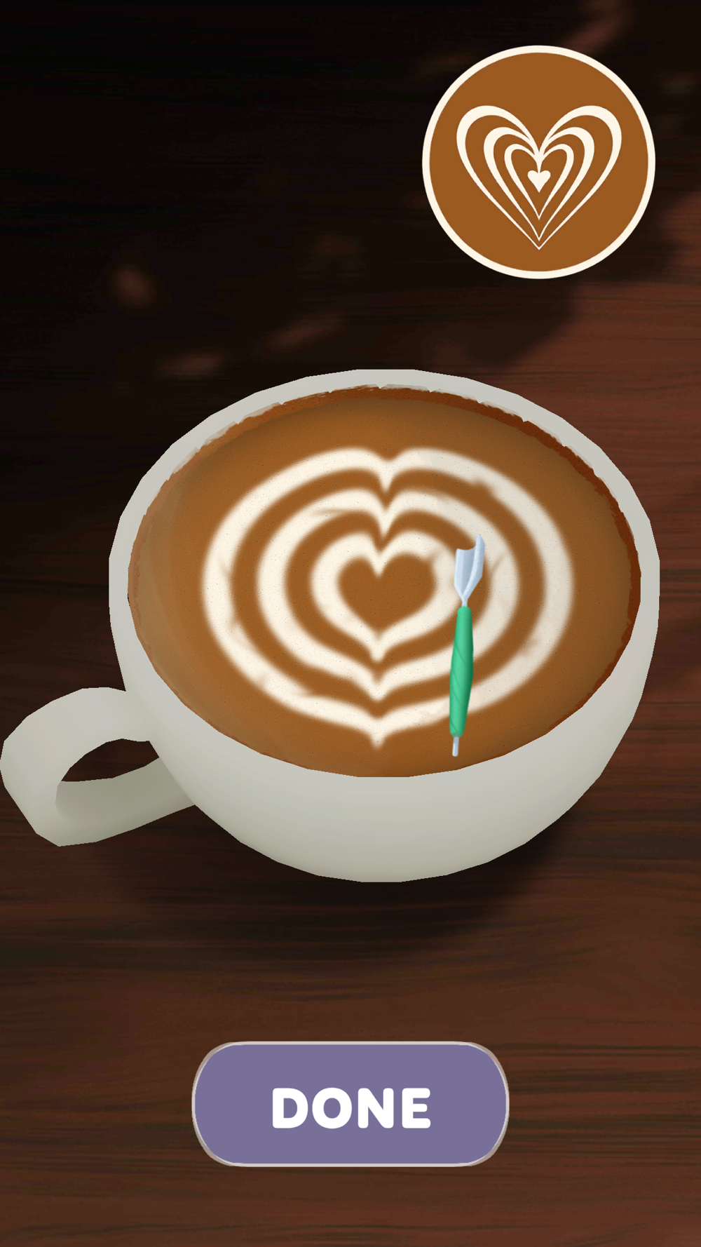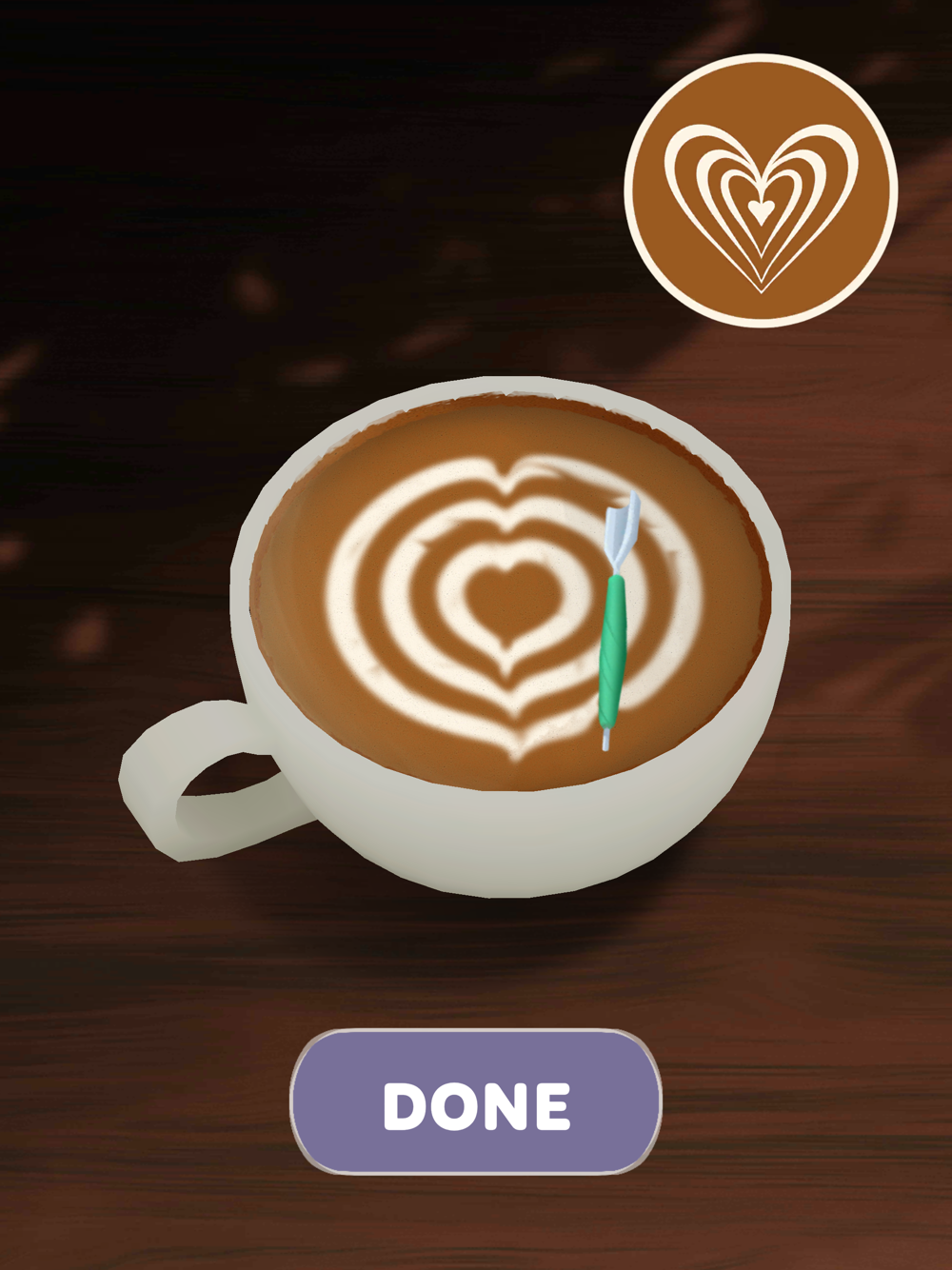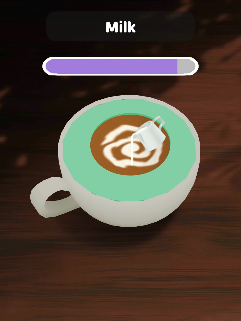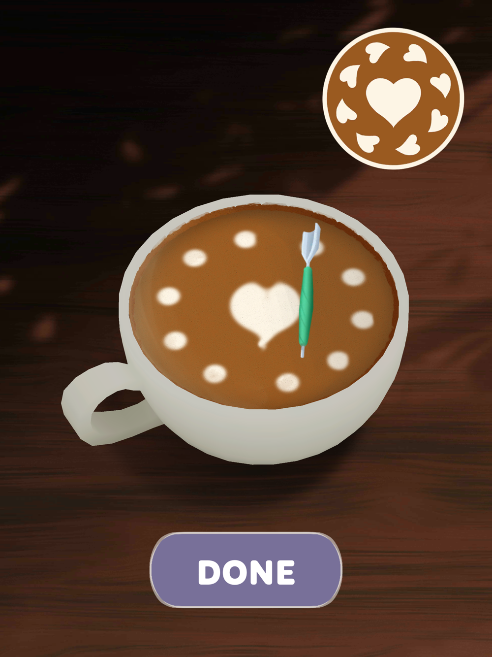 The most realistic coffee art simulator! First, carefully place the milk foam, and then make a drawing out of it using your spoon.