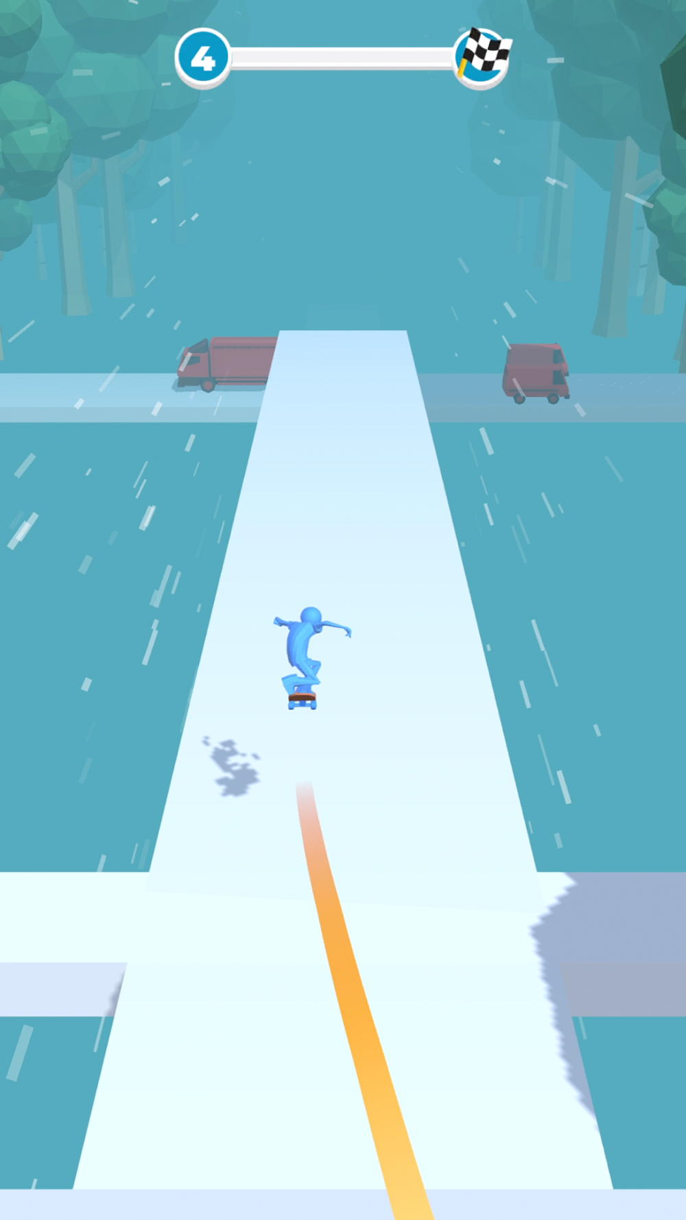 Slide down the road, hit other players, try to avoid cars and become the best.