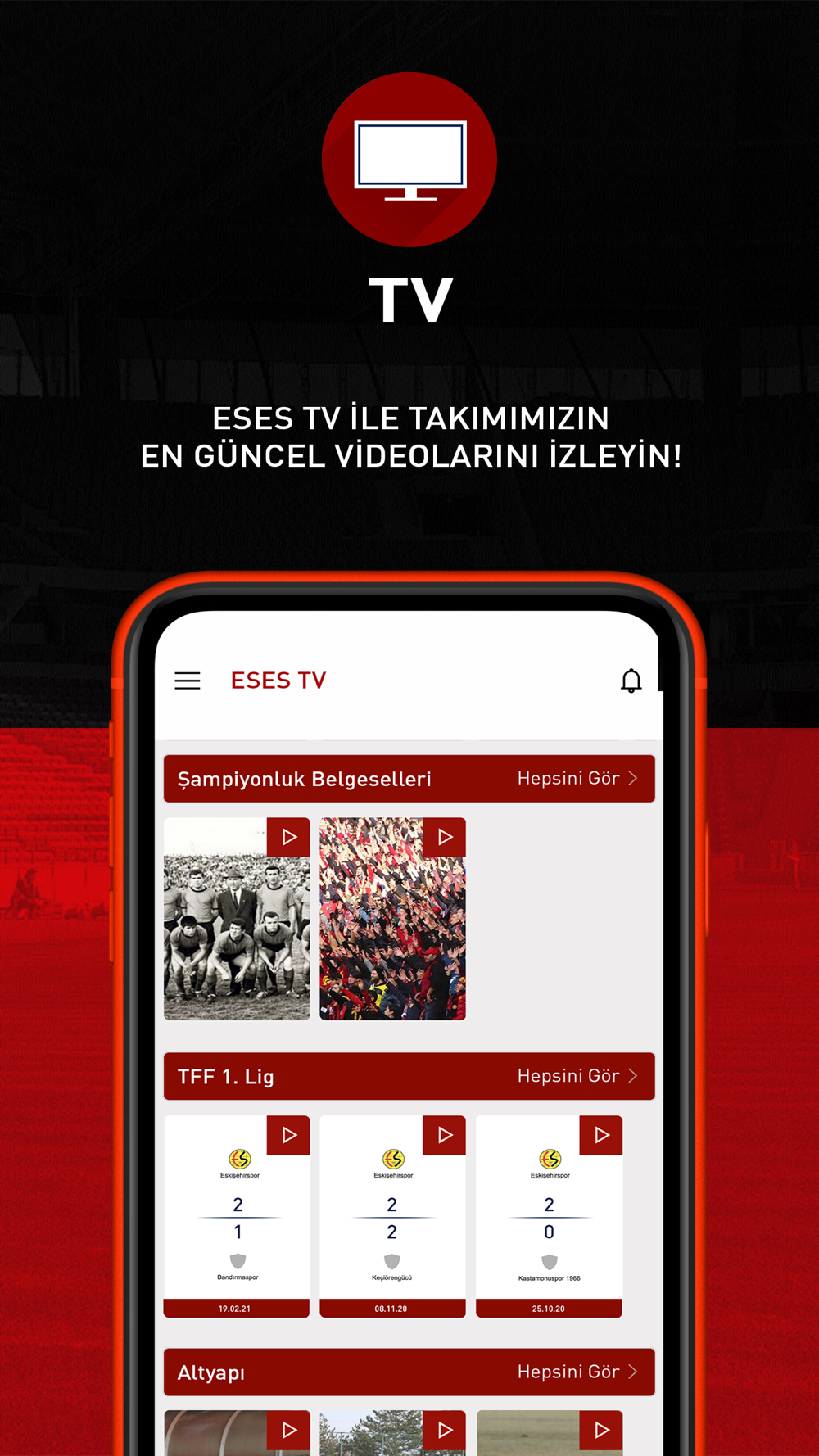- Eskişehirspor Uygulamasında Canlı skorlar ve maçlardan anlık bilgileri görebilirsiniz