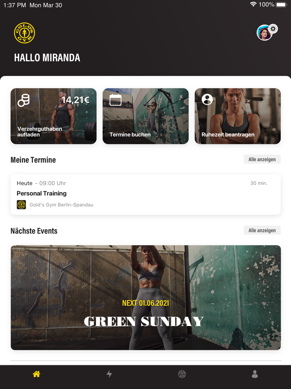 Hol das Beste aus dir und deiner Mitgliedschaft bei GOLD’S GYM heraus. Denn mit dieser App hast du die volle Kontrolle über deinen Vertrag und kannst deine Mitgliedschaft überall und jederzeit anpassen. Du möchtest deine Bankverbindung oder Zahlungsart ändern? Du bist umgezogen und hast eine neue Adresse? Oder du brauchst eine Pause und willst eine Ruhezeit beantragen? Egal, was es ist, du hast es in der Hand!