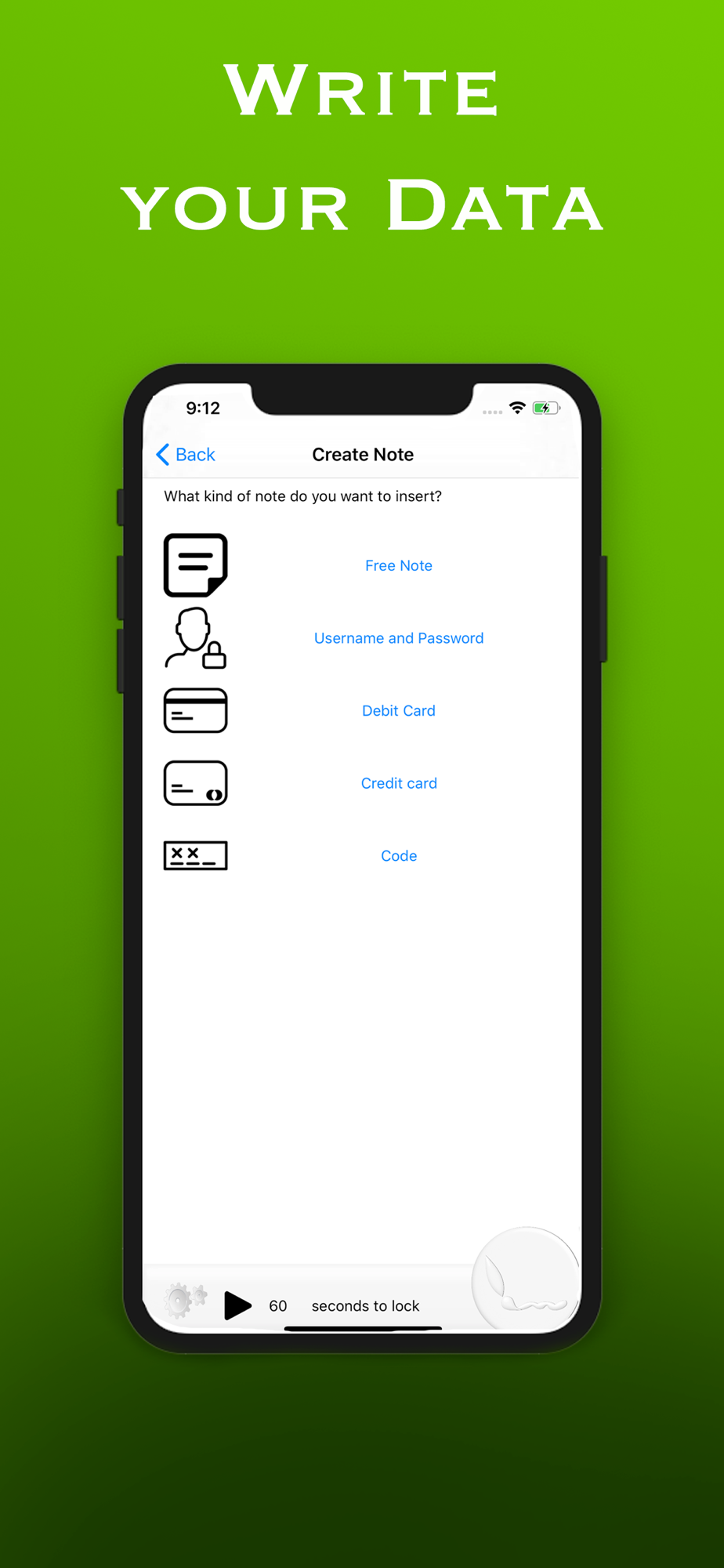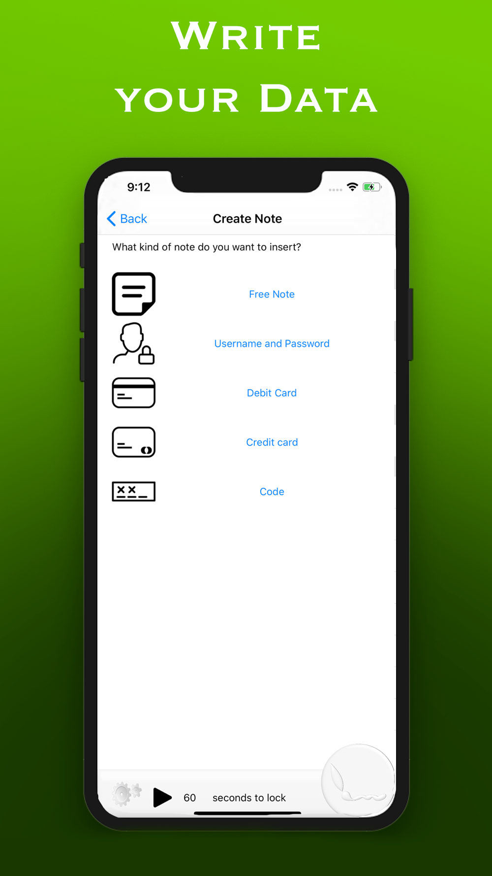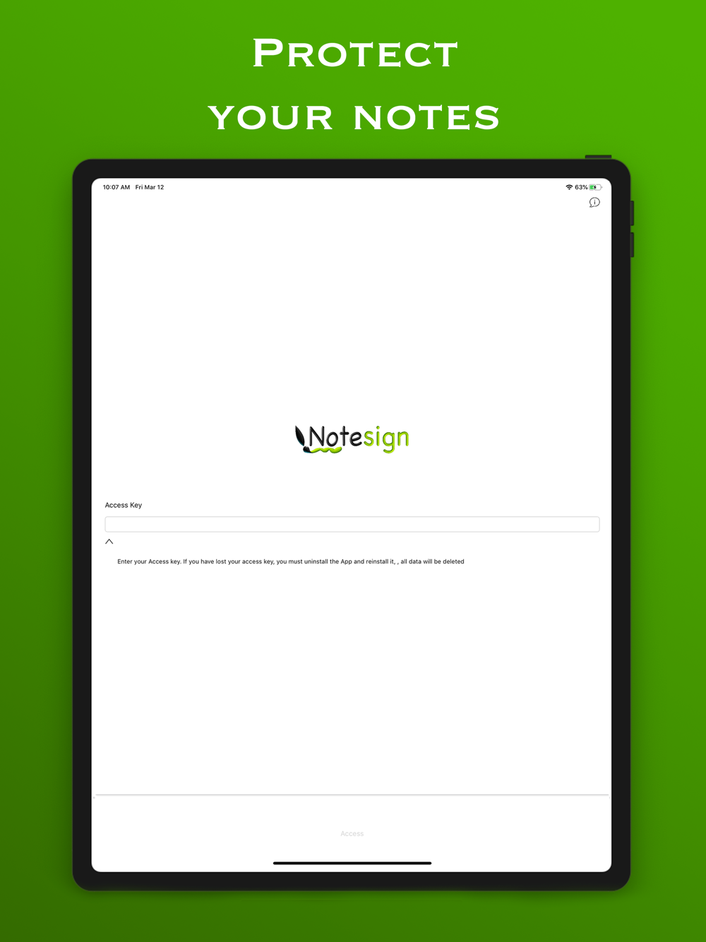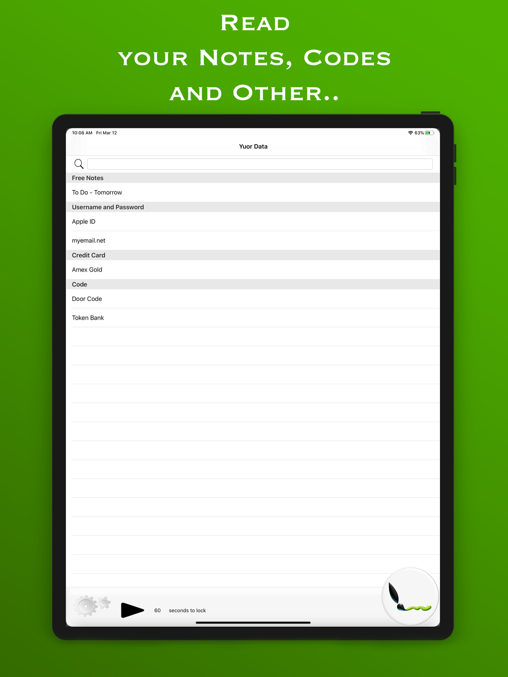 Through an access key that only you know you will be able to consult your notes. A timer blocks the application after 60 seconds so as not to allow outsiders to see your data.