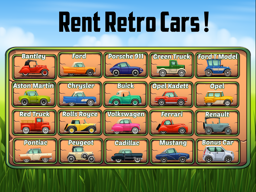 RENT COOL RETRO CARS AND COMPLETE THE LEVELS