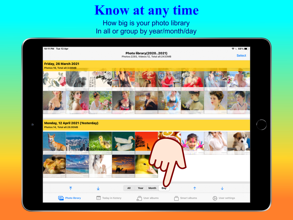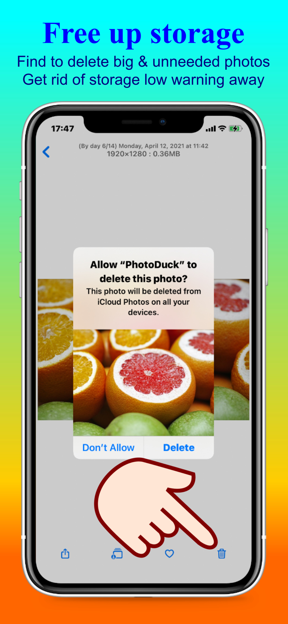 • Easily find large, useless photos, delete them, or create small file version of a photo, save your storage space.• Fully manual operation, avoiding accidental deletion of important photos by the automatic function.• Synchronizing with the system in real time, even if you delete this app, all the changes you have made will still be retained.