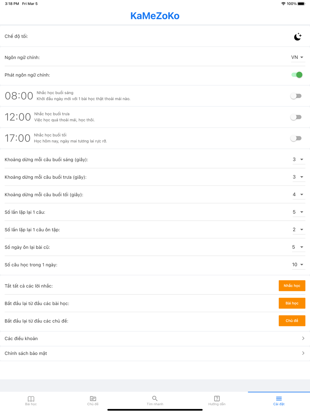 KaMeZoKo là ứng dụng miễn phí, mong muốn giúp mọi người có thể học Tiếng Nhật giao tiếp một cách thoải mái hơn, phản xạ hơn và ngày càng thành công trong cuộc sống. Chúc vui vẻ.