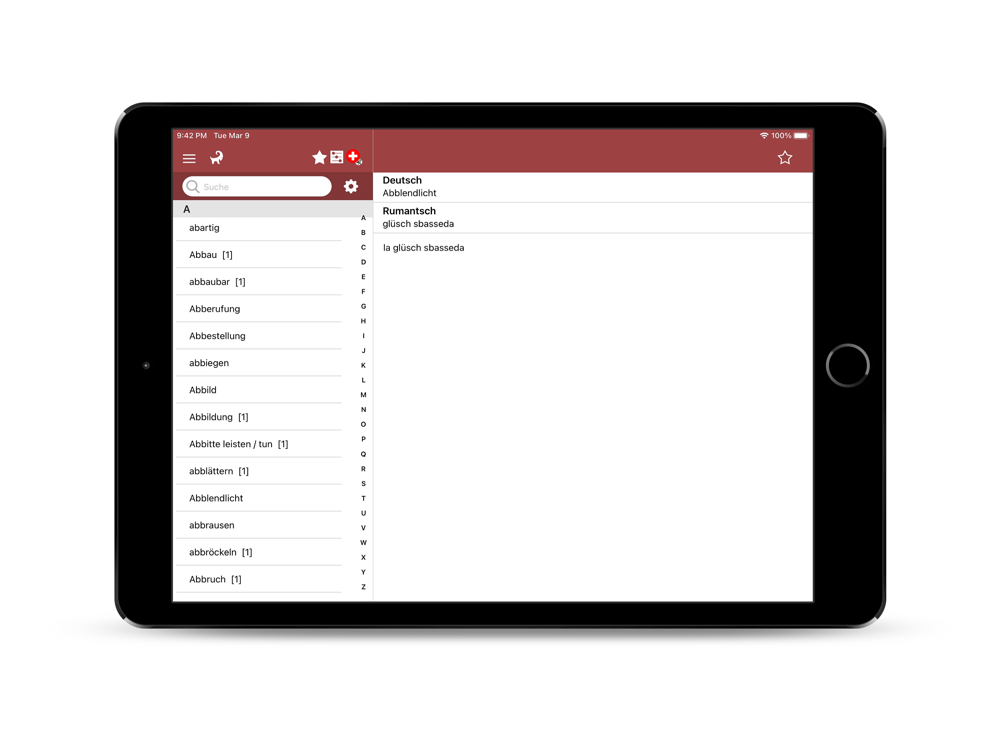 • Mit einem Wisch durch das Alphabet können sie via SCHNELLSUCHE direkt zur gewünschten Wortgruppe springen.