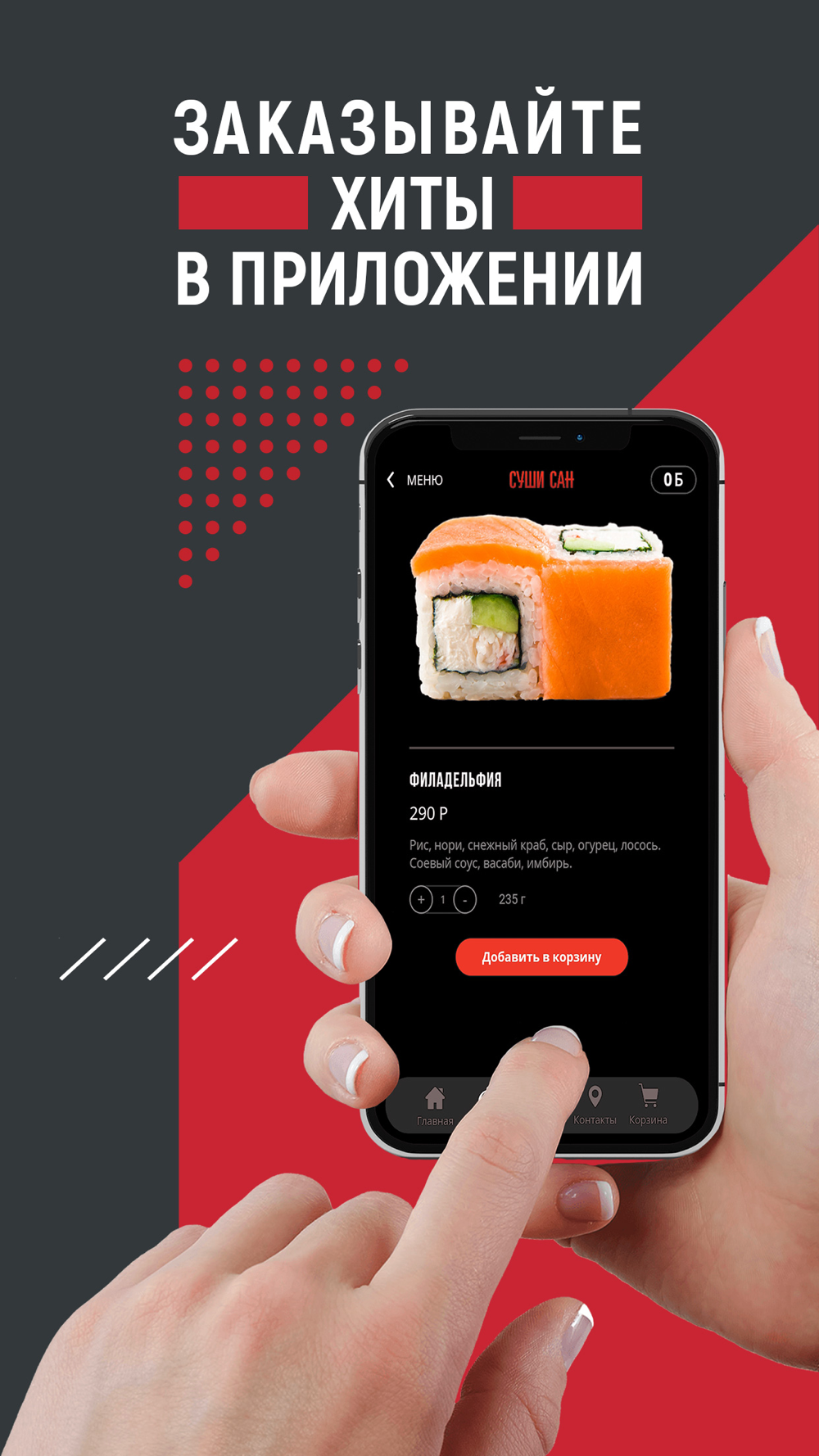 В нашем приложении вы можете заказать любимые блюда недорого и быстро, а также воспользоваться бонусной системой.