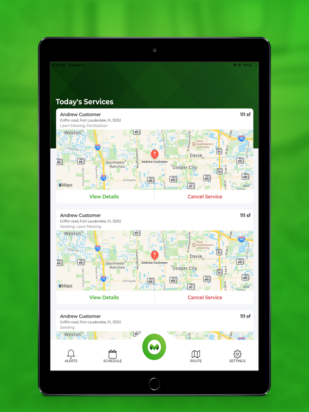 Promote your lawn care company with LawnMo! LawnMo Pro allows your company to receive service requests online, schedule services and accept payments. LawnMo Pro is free and easy to use. Customize your own pricing in the Provider Dashboard for square footage based services. Never send another invoice or chase delinquent payments again! Communicate with your customers on-the-go with our in-app messaging portal. Optimize your day with the built-in route efficiency tool.