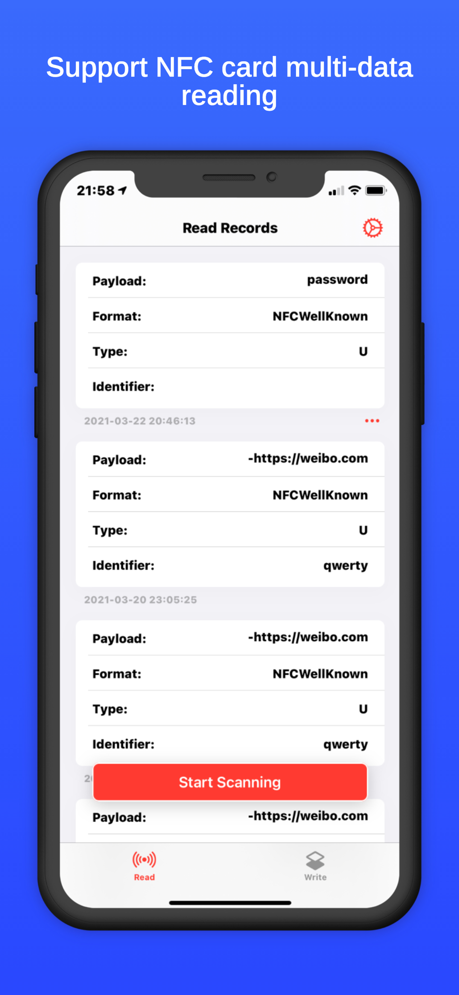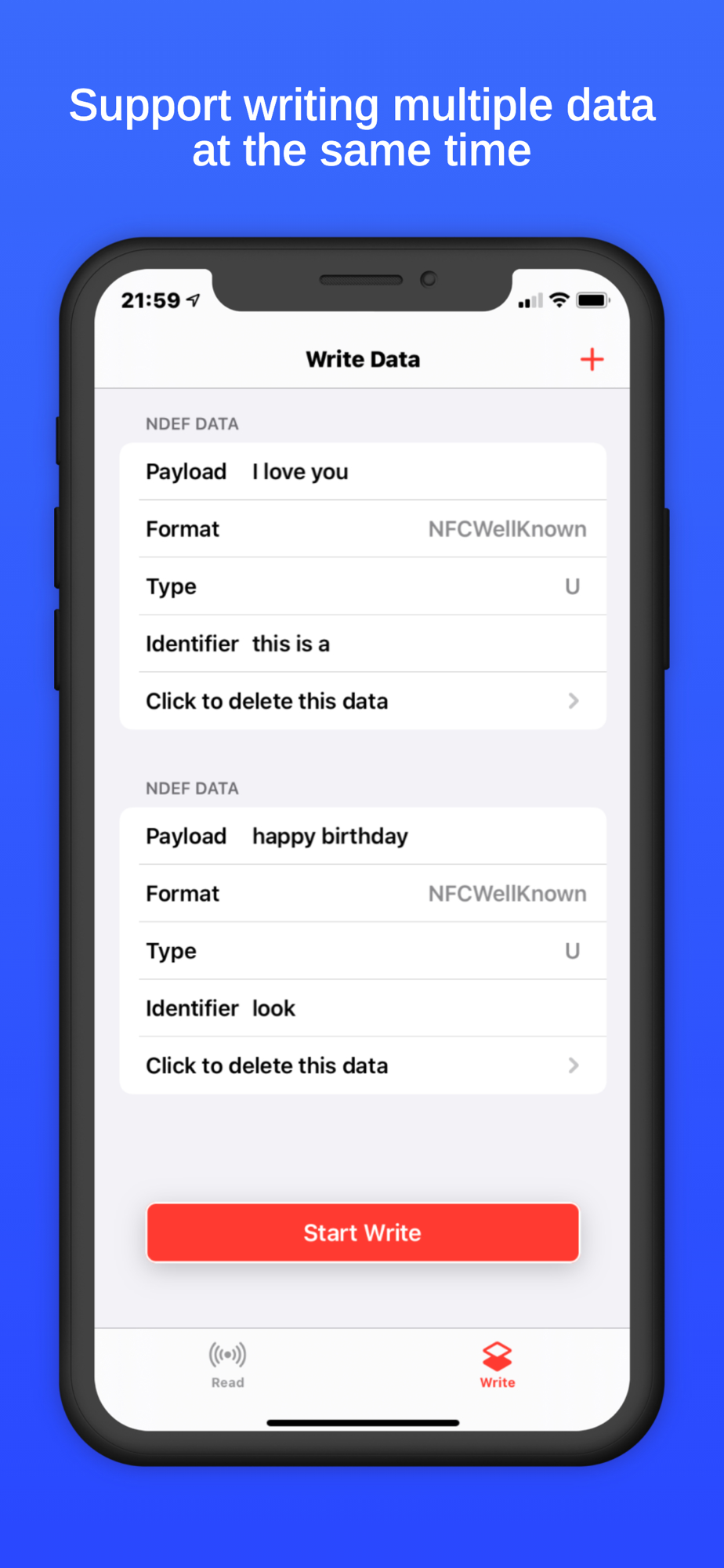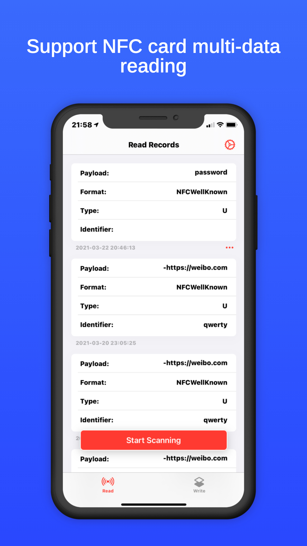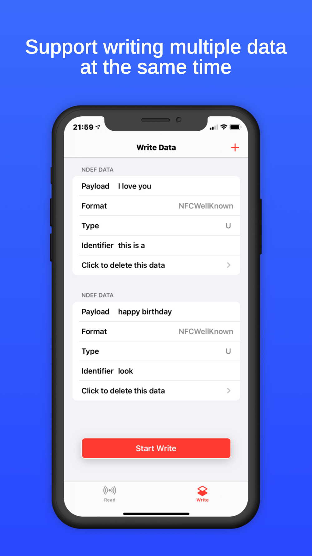 * Write data to NFC cards, also supports writing multiple data at the same time, supports multiple data types.