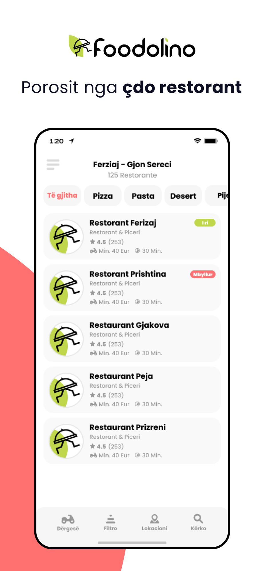 - Show all restaurants in your area and make your decision.