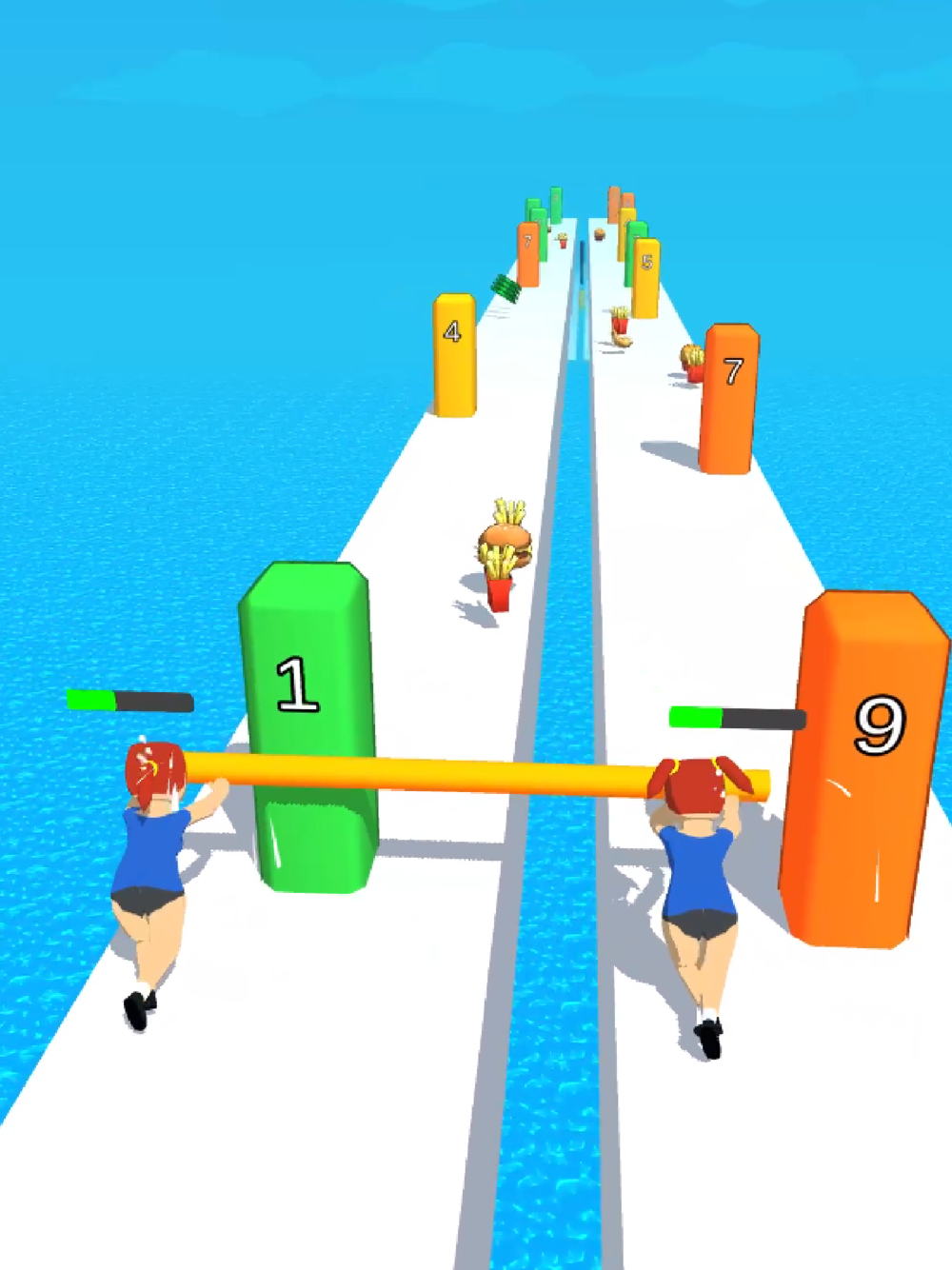 Try to eat as much as possible while keeping balance between both twins when sliding down ramps !