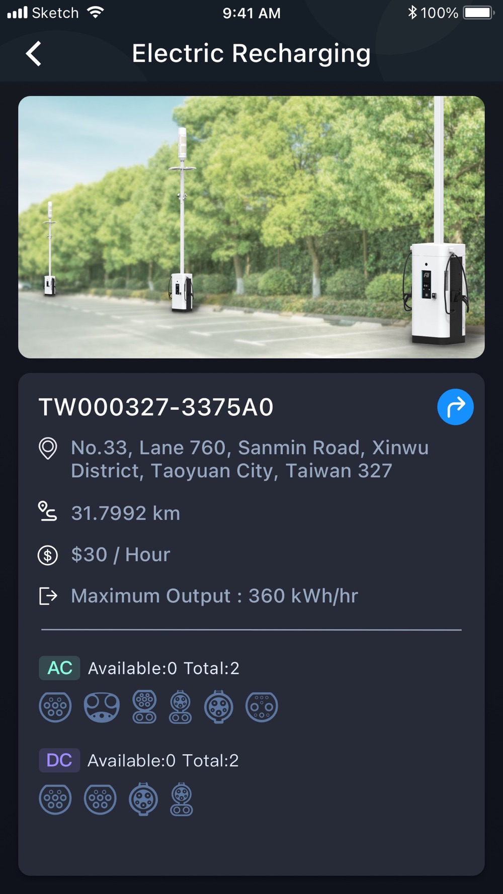 The new electric vehicle charging experience allows you quickly find a charging station.