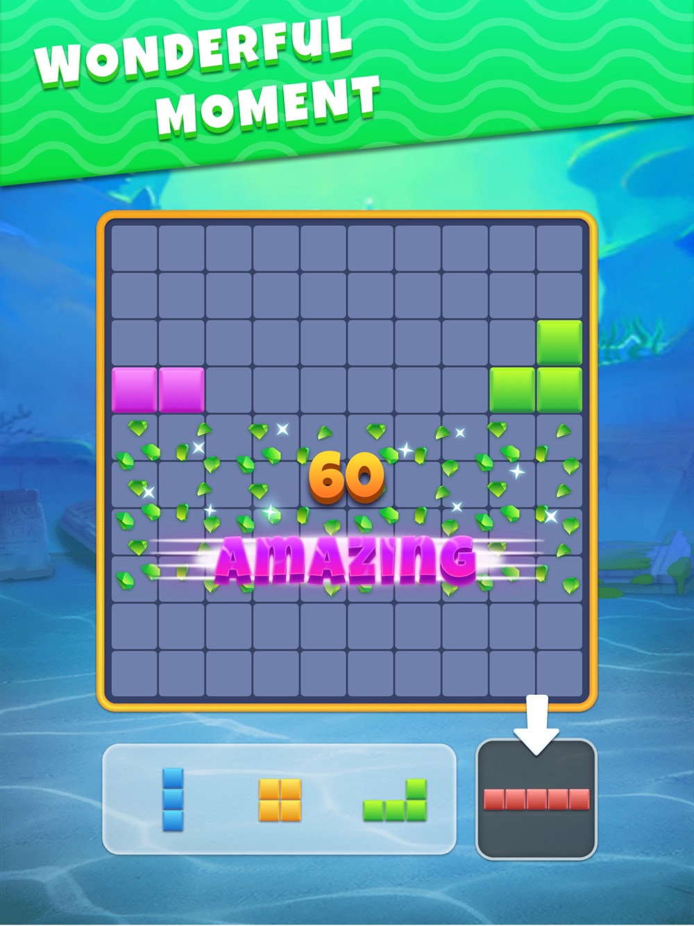Ocean Puzzle is one of the best & fresh puzzle games. Based on the classic block puzzle game, it added one extra grid and put the shapes you don’t need temporarily. And added aquarium mode, customize your undersea world.