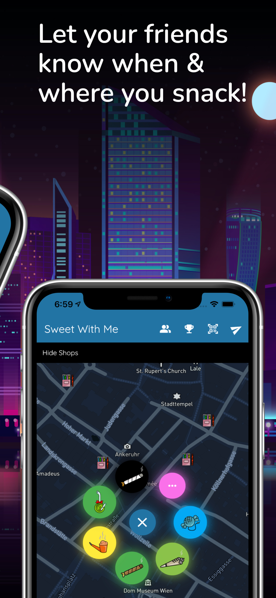 SweetWithMe is a social application to notify you friends when you take a snack so they can join you.