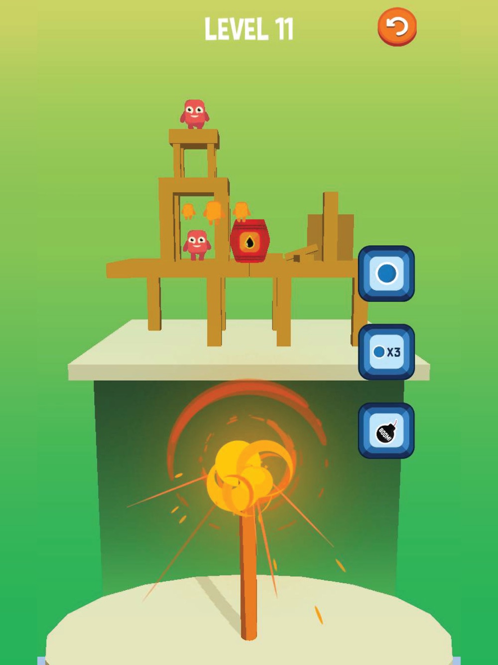 Pull, aim and fire our cute little projectiles. Destroy your enemies to win.